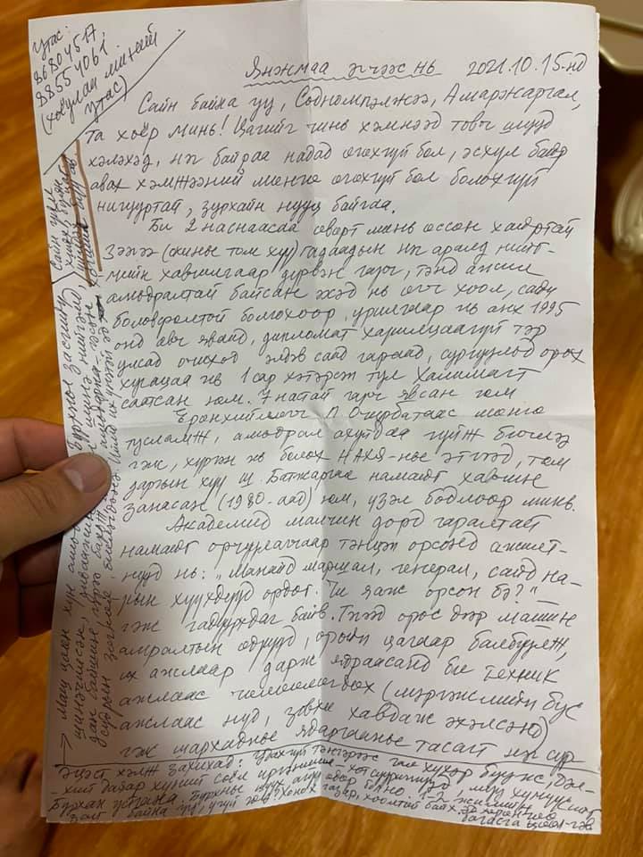 Тэрбээр “1999 онд намайг өвдөж байхад ээж минь сайн гэсэн болгоныг хайж байсан юм. Тэгээд Янжмаа гэж хүнтэй таарч эмчлүүлэхээр мөнгө өгсөн боловч олигтой эмчилгээ хийгээгүй. Өөрийгөө Био энергээр эмчилдэг гэж ярьж байсан юм. Бид үнэн, худлыг нь мэдэхгүй шүү дээ. Тэгээд бид холбоо тасарсан. Гэтэл 22 жилийн дараа гарч ирээд ээж, бид хоёрыг дарамталж “мөнгө юм уу байр өгөхгүй бол “Харааж ална” гэж заналхийж байна. Үүнд гайхаж байна ” гэсэн юм.