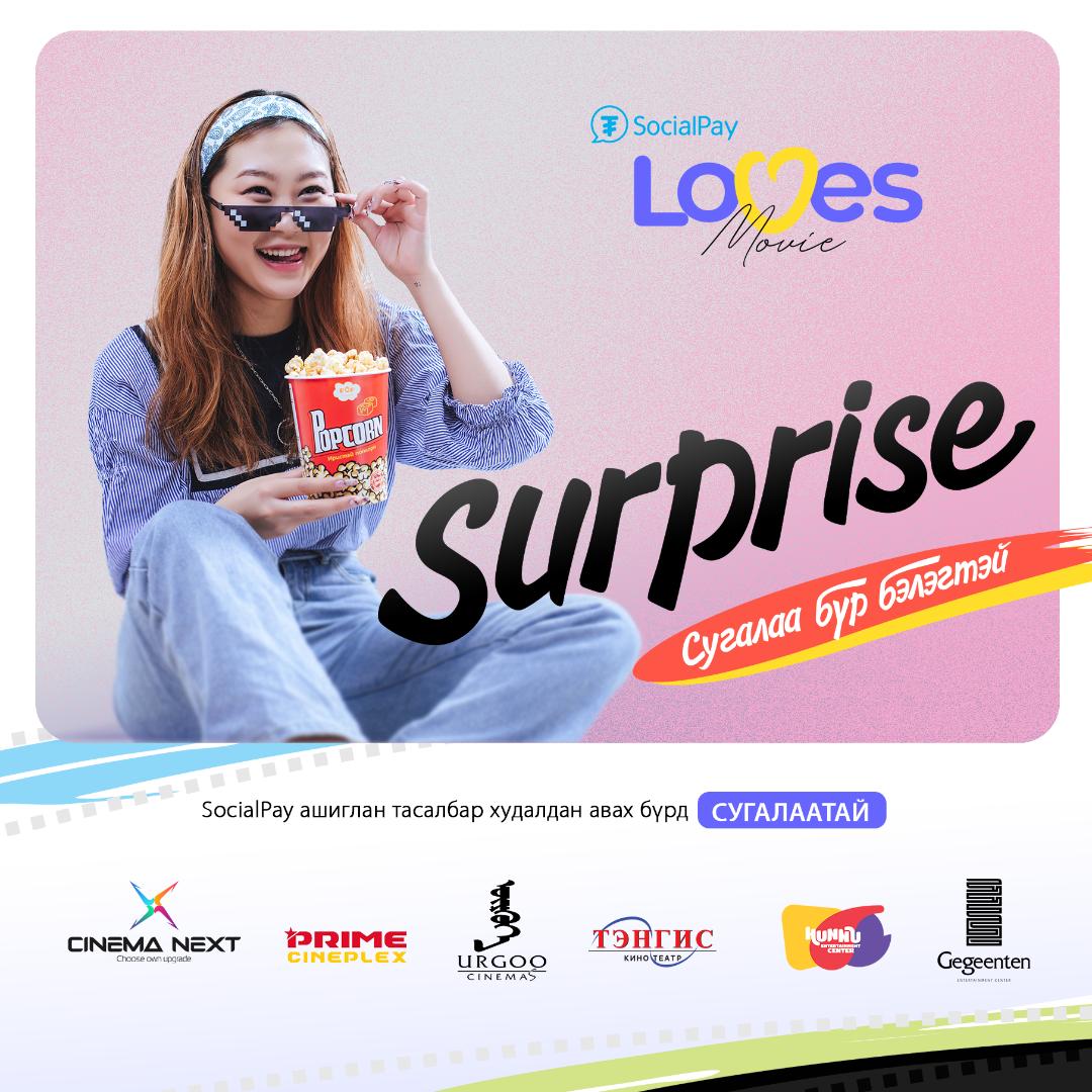 Харин энэ удаад киноны хорхойтон залуустаа зориулан “SocialPay loves movie” урамшуулалт аяныг зарлаж байна. Аяны үргэлжлэх хугацаанд сонгогдсон кино театруудаар үйлчлүүлэхдээ SocialPay ашиглан тасалбар худалдан авсан тохиолдолд танд урамшууллын эрх үүсэх юм. Та урамшууллын эрхээрээ SocialPay аппликэйшний “НЭМЭЛТ” цэсэд байрлах 12 нүд бүхий тоглоомыг тоглон олон төрлийн бэлгийн эзэн болоорой. Таны сонгосон нүд бүхэн бэлэгтэй байх болно.