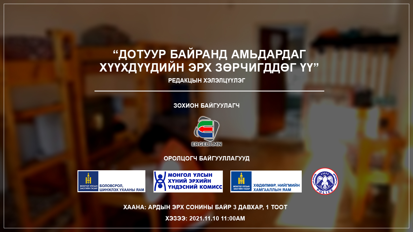| Эргэлт.мн мэдээллийн сайт “Дотуур байранд амьдардаг хүүхдүүдийн эрх зөрчигддөг үү” сэдэвт хэлэлцүүлэг зохион байгуулна |