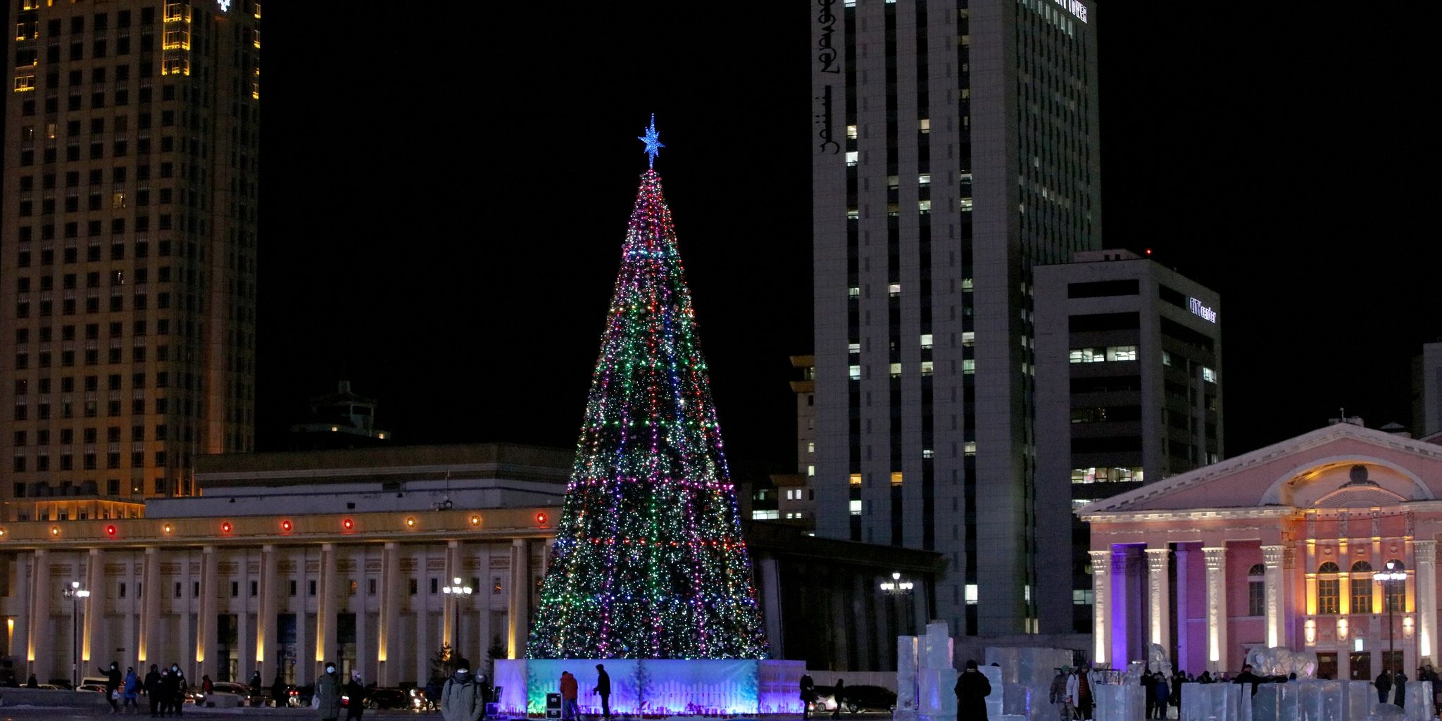 | Төв талбайн сүлд модны гэрлийг асаалаа |