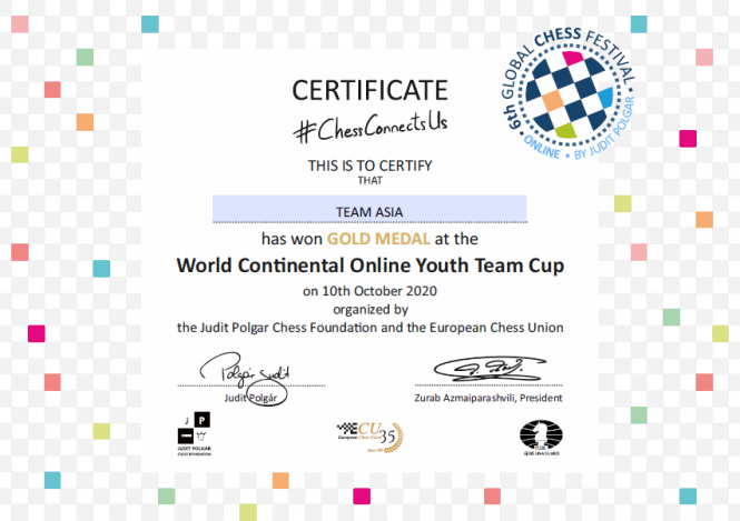 “Торнэло” сайтаар дамжуулан тив хоорондын цомын аварга шалгаруулах шатрын багийн төрлийн тэмцээнийг өчигдөр зохион байгууллаа. Уг тэмцээнд манай орны өсвөрийн шатарчид Ази тивийг төлөөлөн оролцож, нэг ч хожигдолгүй тэргүүлэн, цомын эзэн болжээ.