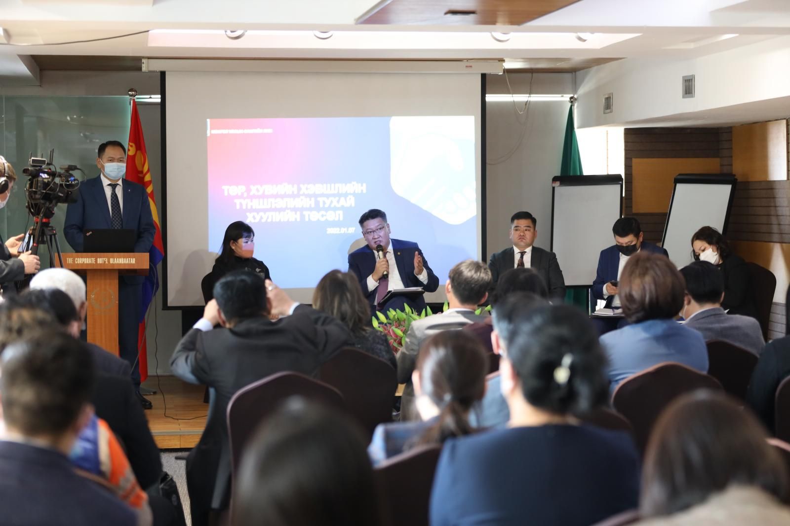 Сангийн яамнаас Төр, хувийн хэвшлийн түншлэлийн тухай хуулийн төслийг шинээр боловсруулан олон нийтэд танилцууллаа. Өнөөдөр хуулийн төслийг МҮХАҮТ-тай хамтран хувийн хэвшил, ААН-үүдэд танилцуулж хэлэлцүүлэг хийлээ. Уг хэлэлцүүлэгт Сангийн сайд Б.Жавхлан, МҮХАҮТ-ын Ерөнхийлөгч О.Амартүвшин болон аж ахуйн нэгжүүдийн төлөөлөл оролцлоо. Төр, хувийн хэвшлийн түншлэлийн тухай хуулийн төсөл нь 9 бүлэг, 60 зүйлтэй бөгөөд хуулийн зорилт нь нийтийн зориулалттай дэд бүтэц, төрийн үйлчилгээний салбарт төр, хувийн хэвшлийн түншлэлийн төслийг хэрэгжүүлэхэд хувийн хэвшлийн оролцоо, хөрөнгө оруулалтыг дэмжих, урт хугацаанд үр ашигтай хамтран ажиллах эрхзүйн таатай орчин бүрдүүлэхэд оршиж байна.