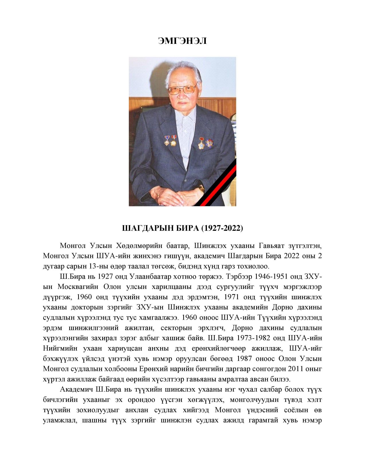 | ЭМГЭНЭЛ: Шагдарын БИРА (1927-2022) |