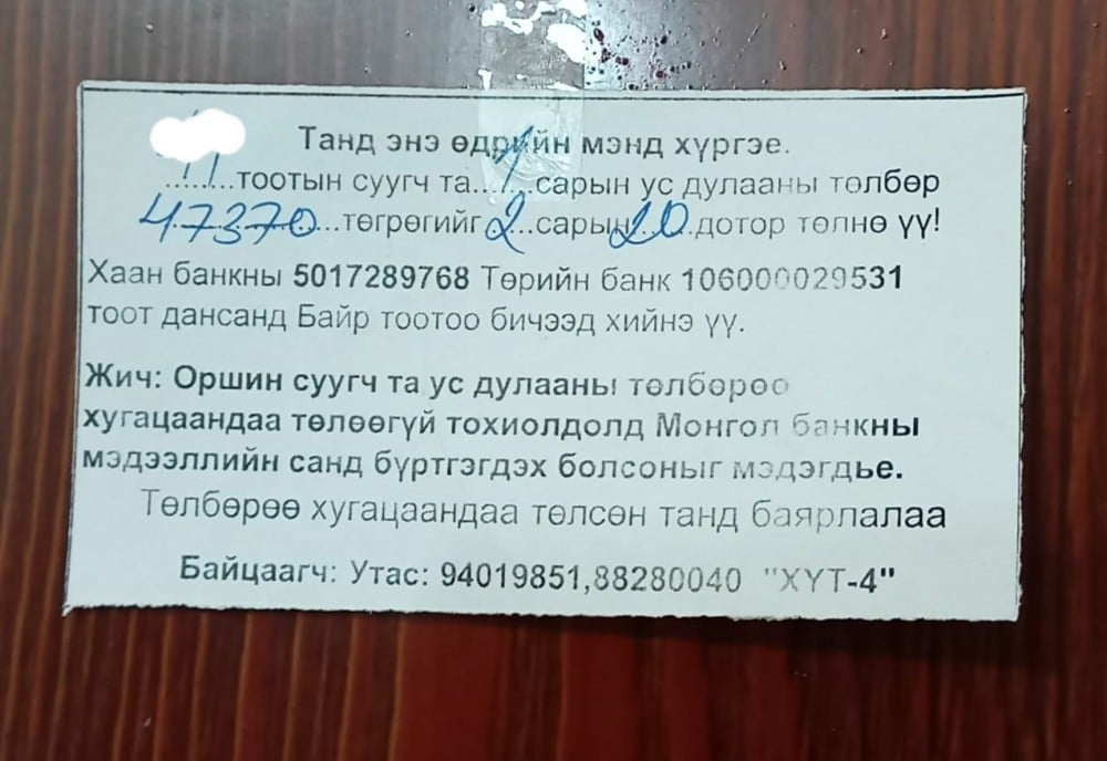 Харин Монгол банкны Зээлийн мэдээллийн албанаас “Ус, дулааны төлбөрөө цаг тухайд нь төлөөгүй айлыг Монгол банкны зээлийн мэдээллийн санд бүртгэх ямар нэгэн тушаал шийдвэр, журам, захирамж гараагүй гэдгийг хариуцлагатайгаар мэдэгдье” гэжээ.