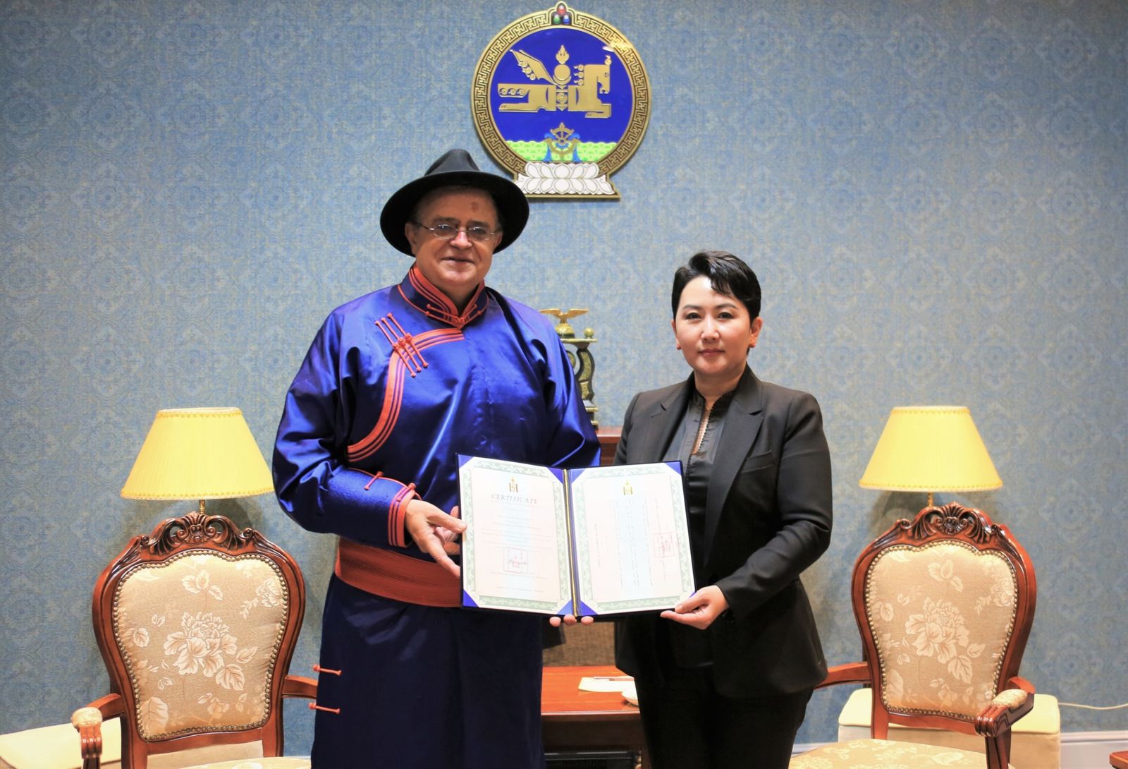 | Давиде Беллаталлад Монгол Улсын Соёлын элчээр сонгож гэрчилгээг гардуулан өглөө |