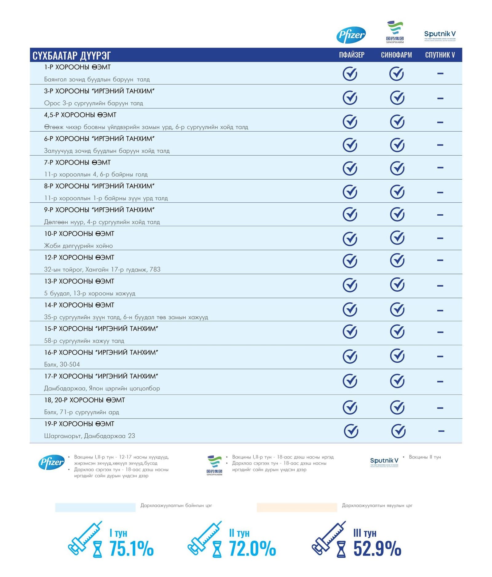 | Өнөөдөр ажиллах дархлаажуулалтын цэгүүд |