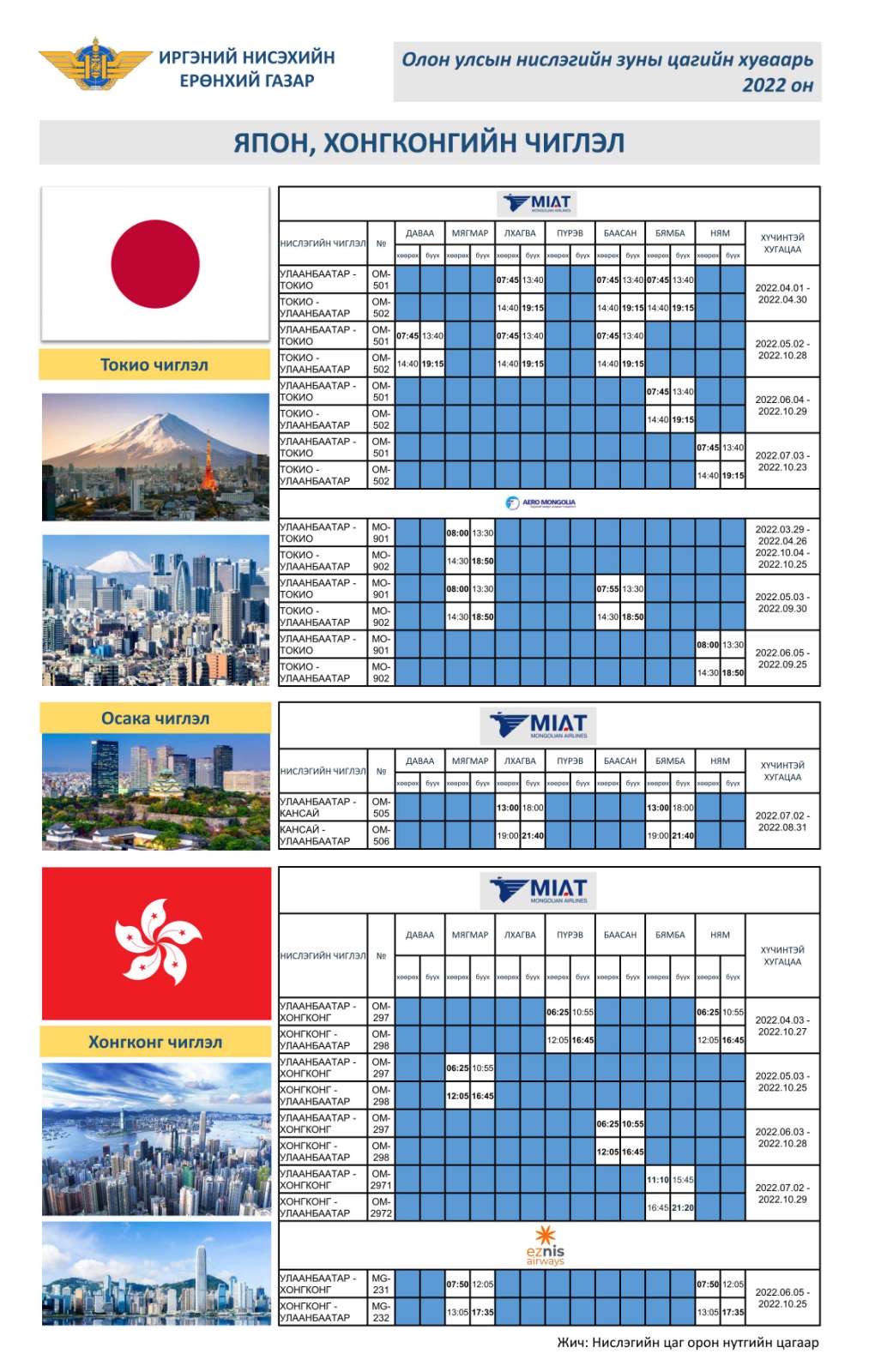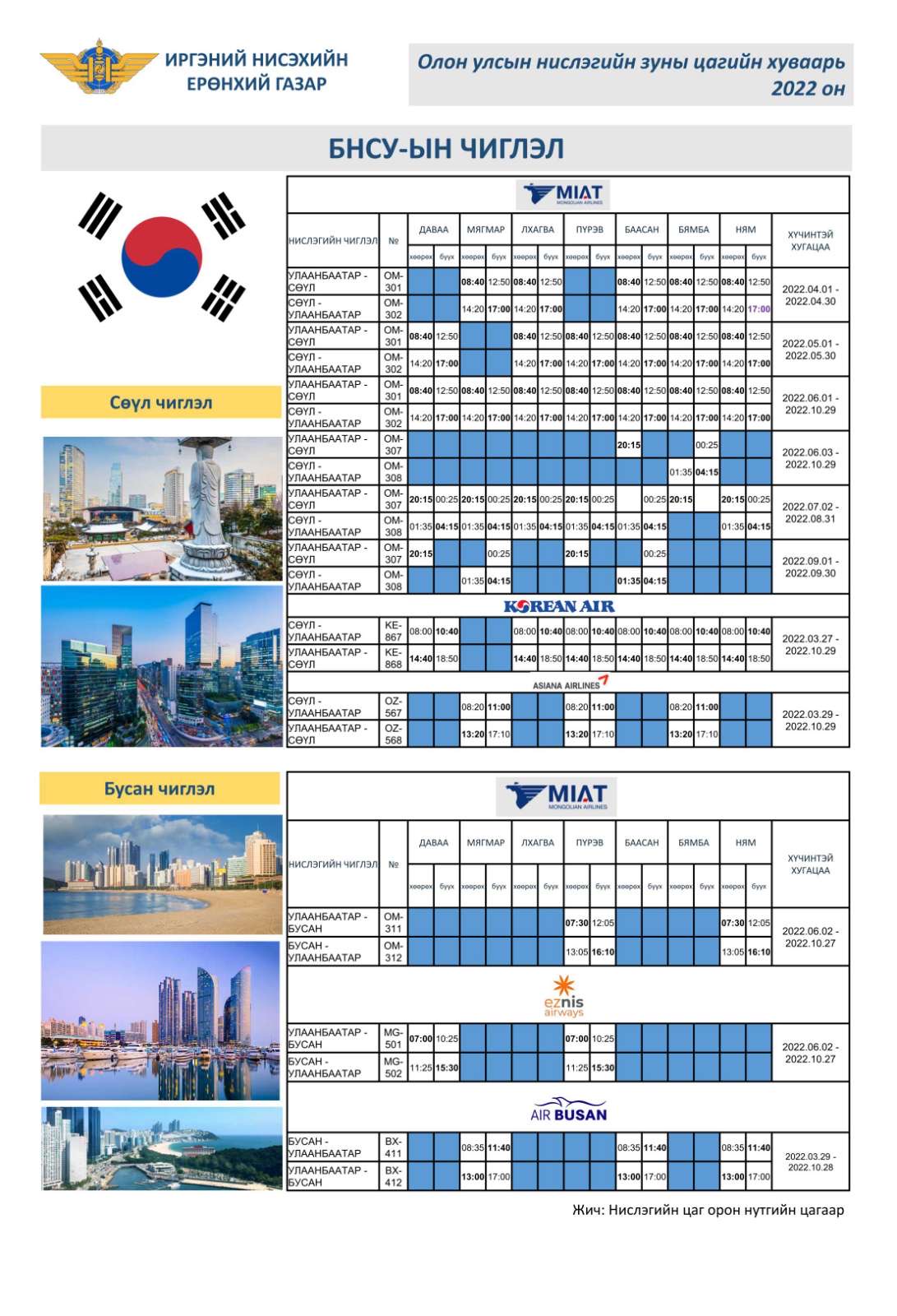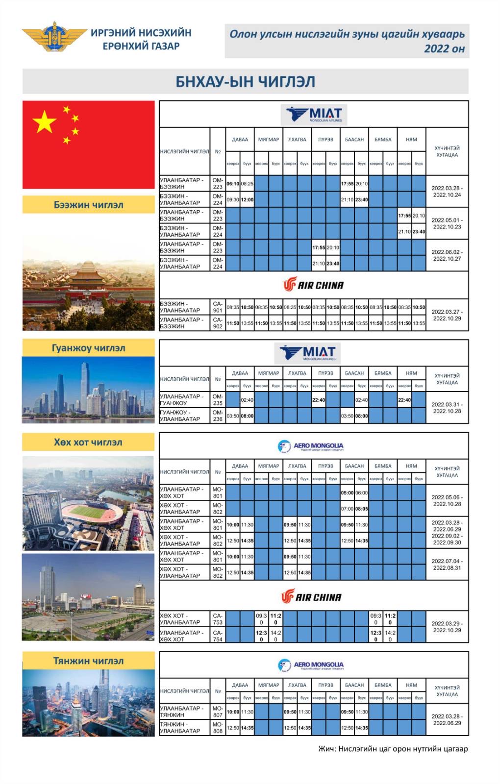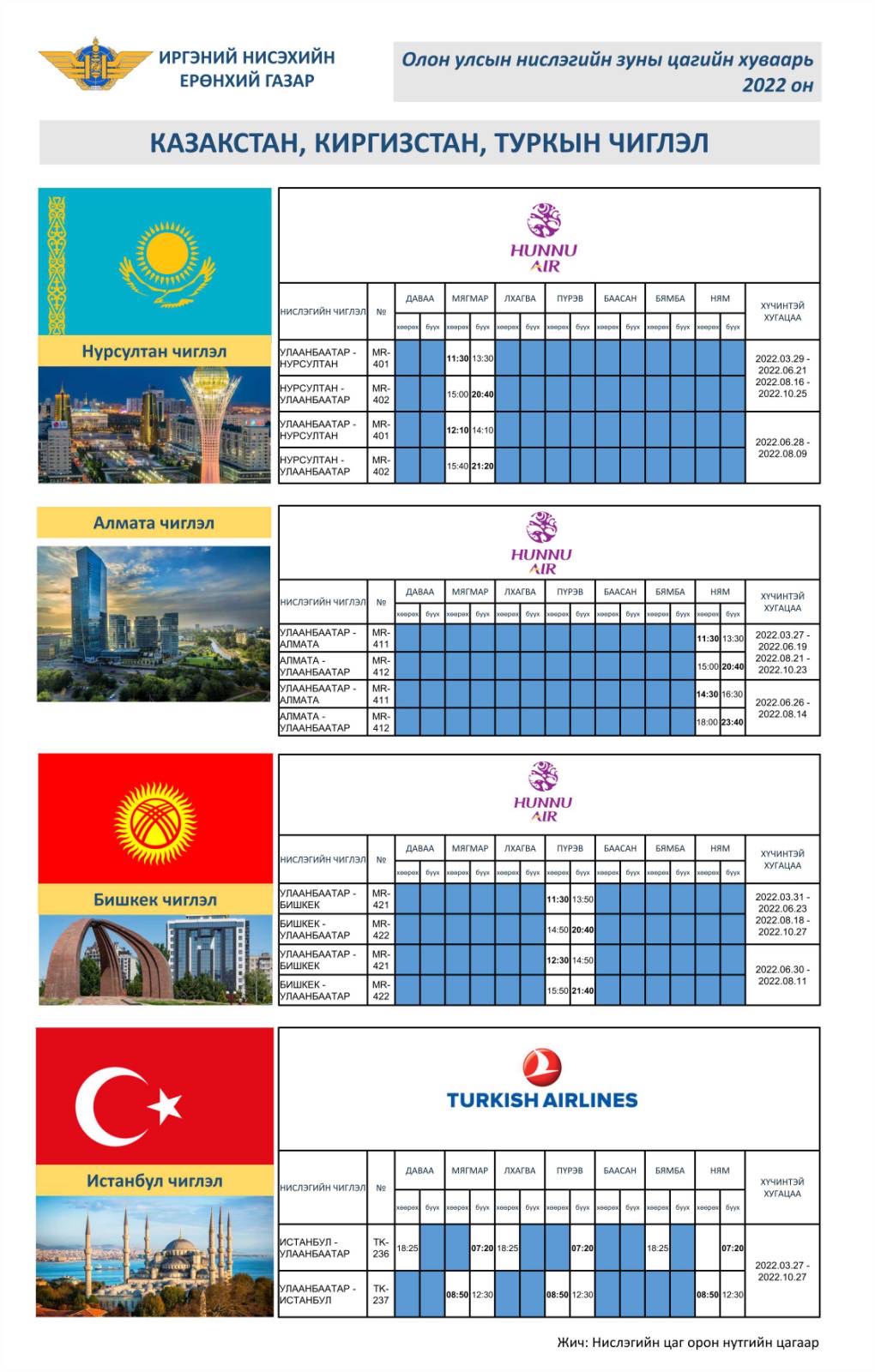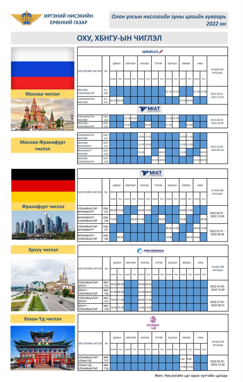 | ТАНИЛЦ:Олон улсын зуны нислэгийн хуваарь |