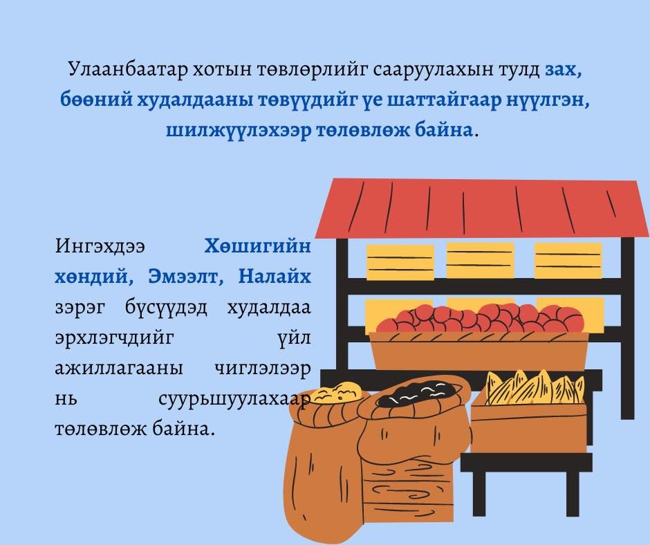 | Зах, бөөний төвүүдийг үе шаттайгаар нүүлгэн шилжүүлэхээр болжээ |