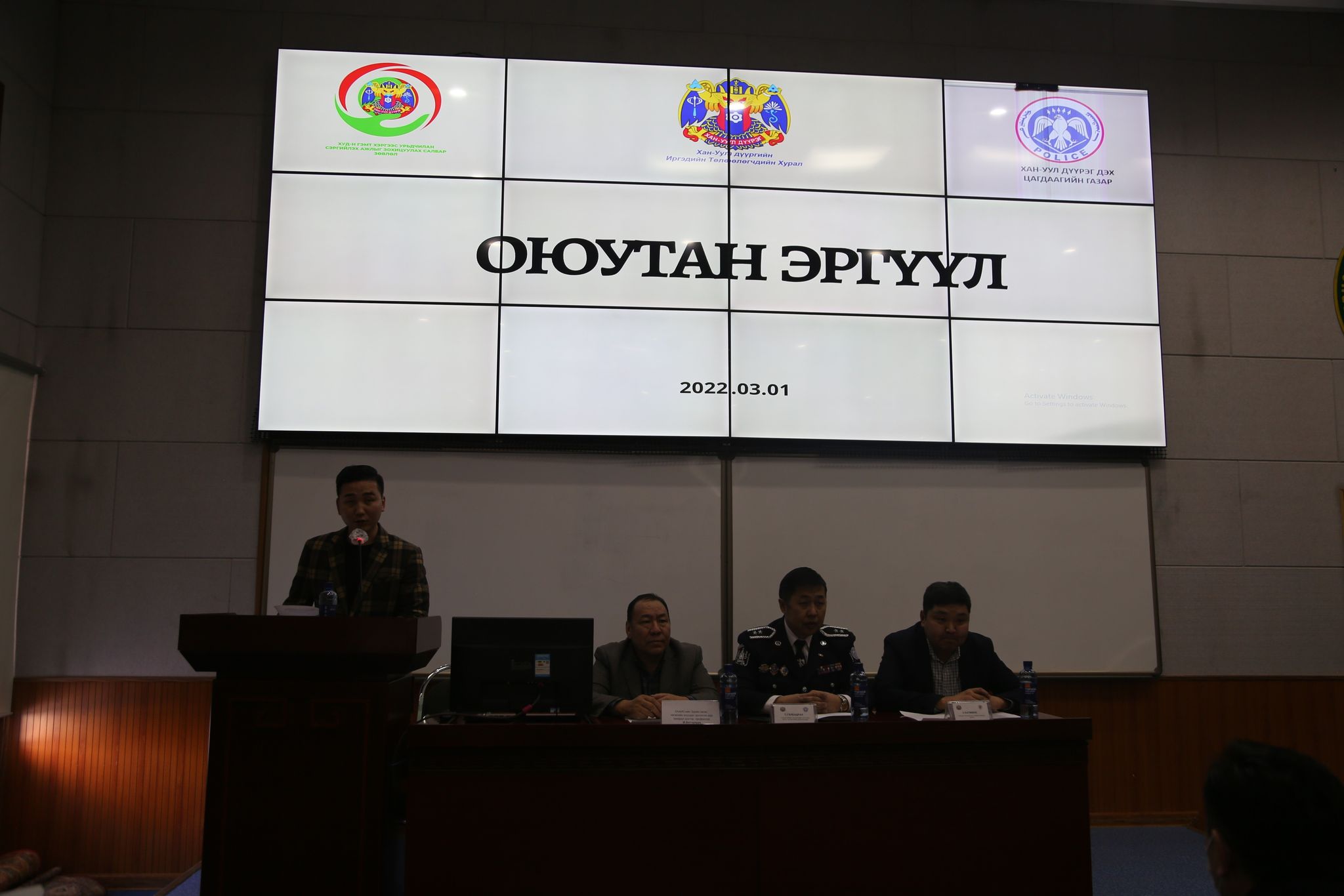 Энэ үеэр Хан-Уул дүүргийн гэмт хэргээс урьдчилан сэргийлэх ажлын зохицуулах салбар зөвлөлийн ажлын албаны дарга Батмөнх “Хан-Уул дүүргийн гэмт хэргээс урьдчилан сэргийлэх ажлын зохицуулах салбар, Хан-Уул дүүргийн иргэдийн төлөөлөгчдийн хурлаас “Оюутан эргүүл” ажиллуулах шийдвэр өнгөрсөн оны арван сард батлагдсан. Ингэхдээ тухайн үед цар тахалтай байсан учраас хойшлогдоод, одоо цаг үеийн нөхцөл байдал харьцангуй сайн байгаа энэ үед оюутнуудтайгаа хамтарч энэхүү эргүүлийг ажиллуулах журмыг танилцуулах, мөн Хан-уул дүүргийн гэмт хэргийн нөхцөл байдал, үүнээс сэргийлэхэд иргэд хэрхэн оролцох талаар тайлбарлаж байна. Мөн энэ сайн дурын үйл ажиллагаанд оролцсоноор хөтөлбөрт хамрагдах оюутнуудад ямар хэрэгтэй байх талаар анхан шатны сургалт орж байна. Цаашид тус дүүрэгт үйл ажиллагаа явуулдаг бүх их дээд сургуулиудад энэхүү хөтөлбөрөө хэрэгжүүлээд байнгын тогтмол үйл ажиллаагаа явуулснаар гудамж талбайд үйлдэгдэж байгаа гэмт хэргийн тоо буурах, оюутан залуус хуулийн мэдлэгтэй болох үр дүнтэй ажил гэж харж байгаа”гэв.