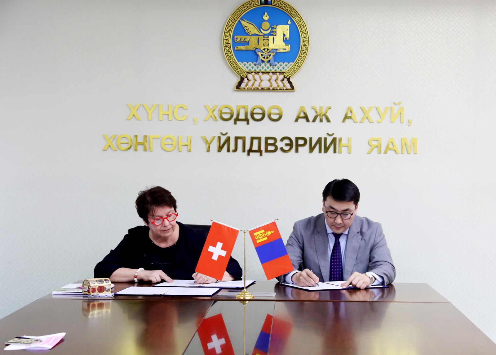 Хүнс, хөдөө аж ахуй, хөнгөн үйлдвэрийн яамны Төрийн нарийн бичгийн дарга Т.Жамбалцэрэн Швейцарын хөгжлийн агентлагийн хөгжүүлсэн Мал аж ахуйн гаралтай түүхий эд бүтээгдэхүүний чанар, гарал үүслийн мөшгөх систем, системийн бичиг баримт, системийн эх код болон мэдээллийн санг оюуны өмчийн эрхийн хамт хүлээн авлаа.