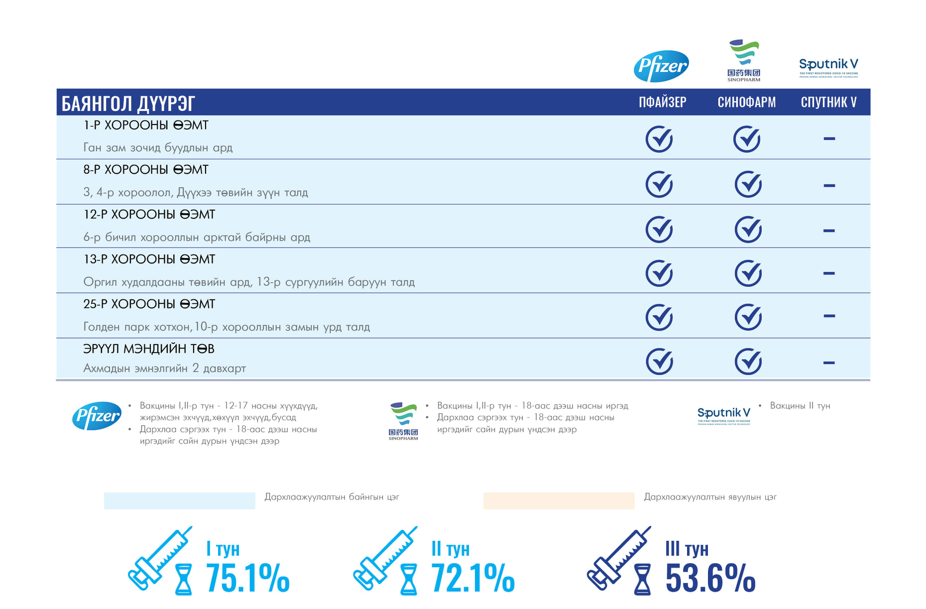 | ТАНИЛЦ: Өнөөдөр ажиллах дархлаажуулалтын цэгүүд |