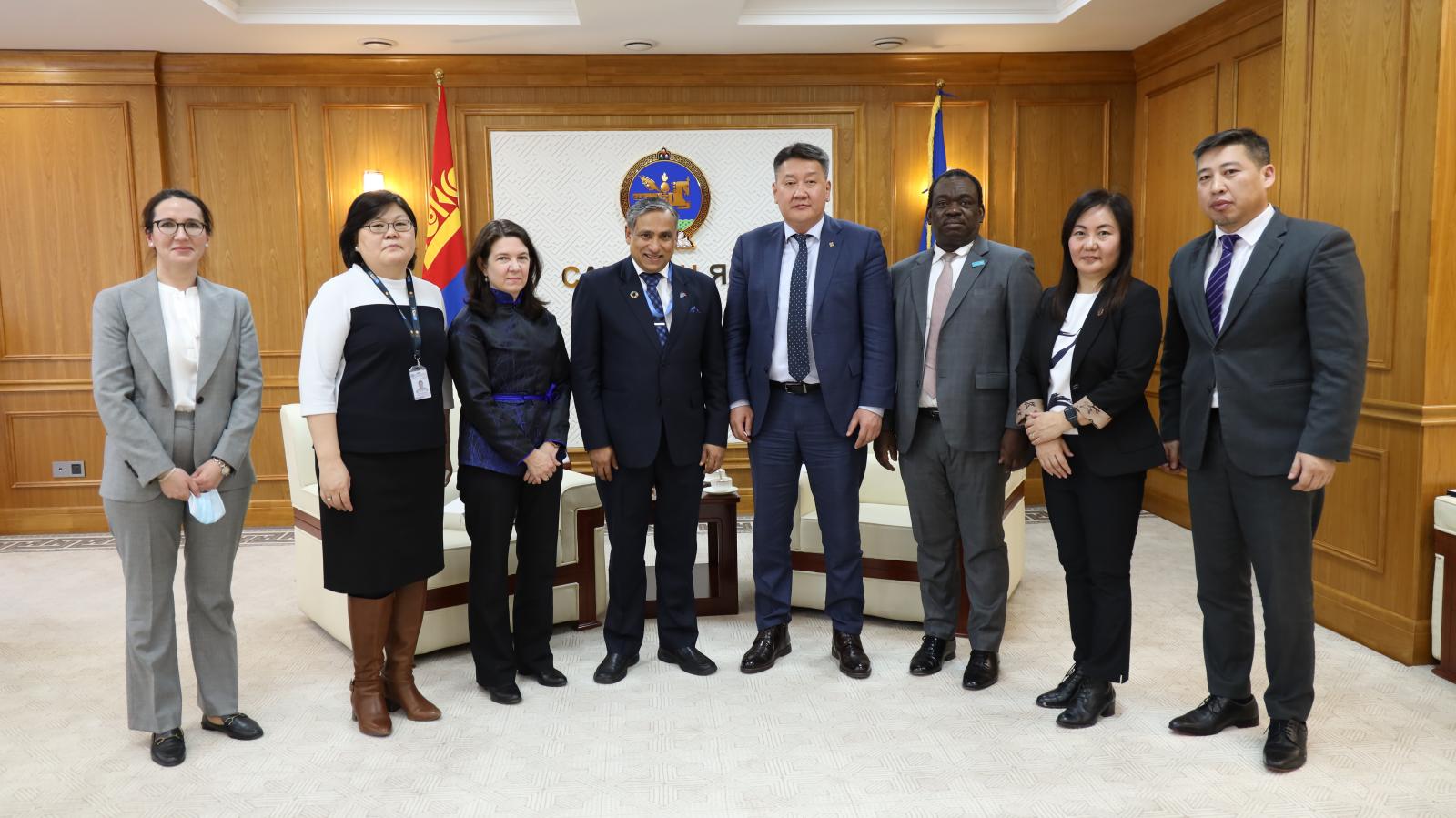 Сангийн сайд Б.Жавхлан НҮБ-ын Суурин төлөөлөгч Тапан Мишра болон НҮБ-ын төлөөллийг хүлээн авч уулзлаа. Уулзалтаар НҮБ-ын зүгээс 2023-2027 он хүртэл баримтлах НҮБ-ын Тогтвортой хөгжлийн хамтын ажиллагааны баримт бичгийг танилцуулсан бөгөөд Монгол Улсын тогтвортой хөгжлийн зорилтуудын индикаторыг хэрхэн сайжруулах, тус үйл ажиллагаатай холбоотойгоор стратеги боловсруулах, холбогдох байгууллагуудад танилцуулах талаар ярилцлаа.