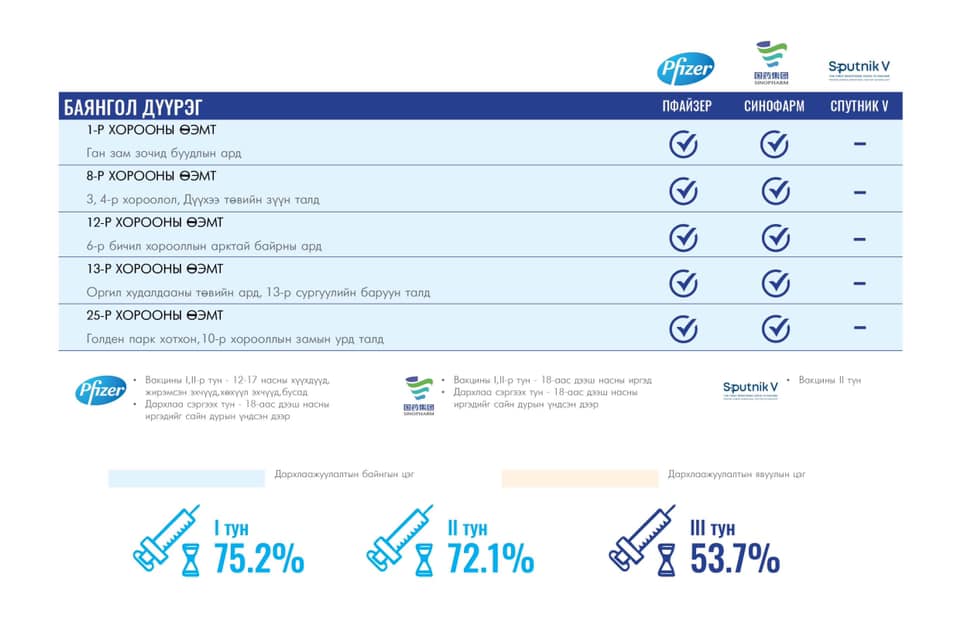 | ТАНИЛЦ: Өнөөдөр ажиллах дархлаажуулалтын цэгүүд |