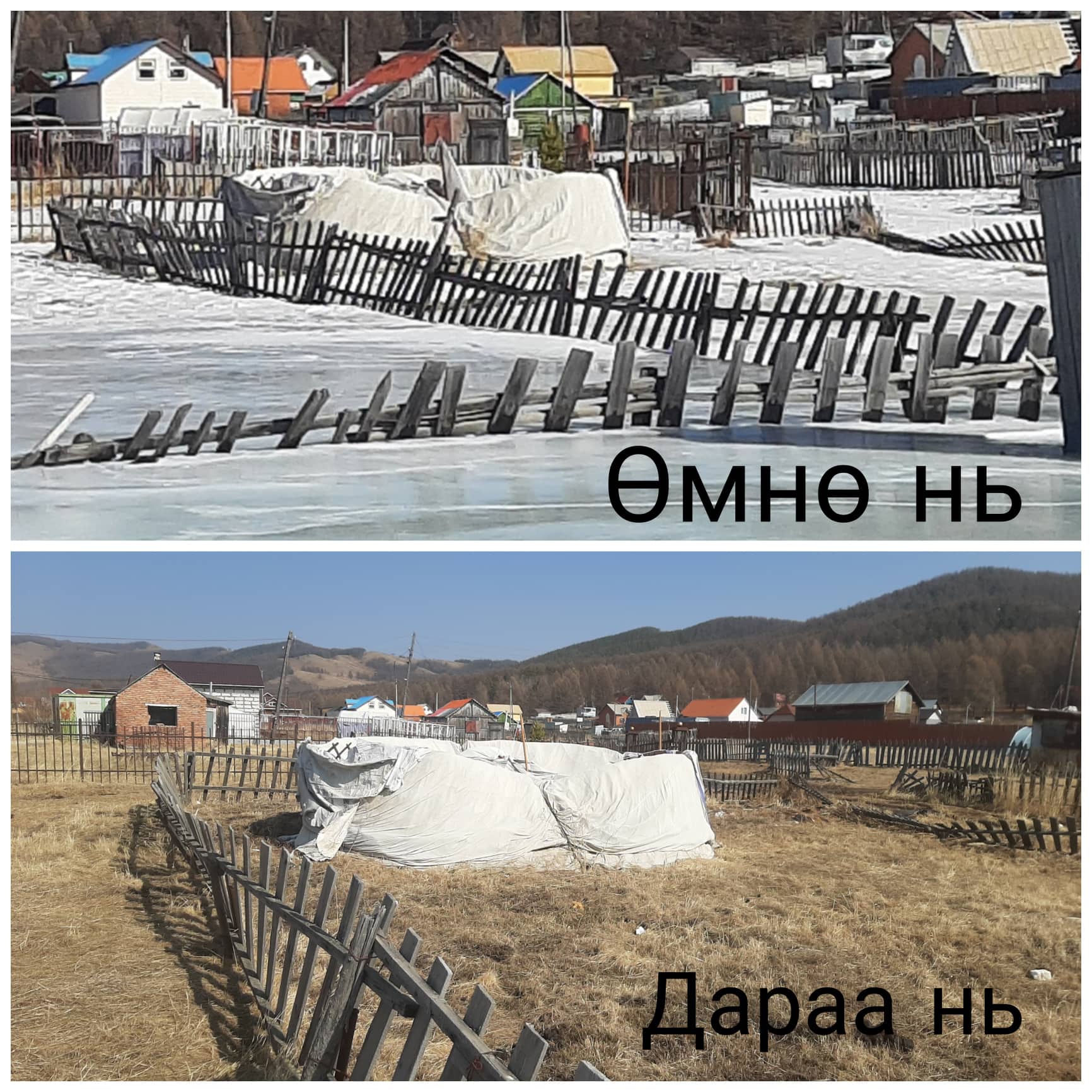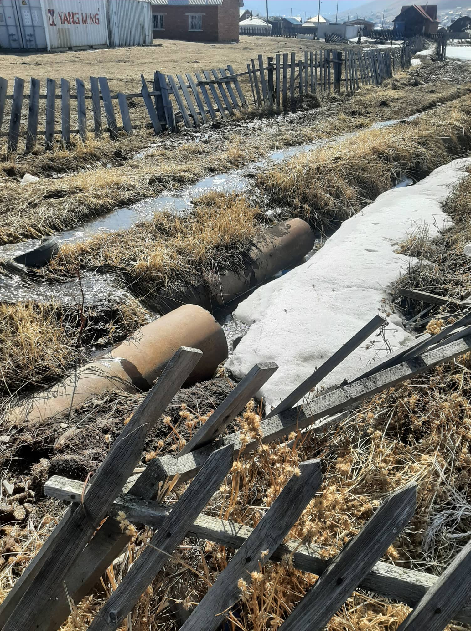 Сарын өмнө ирэхэд байсан хатуу гадаргатай мөсөн хөлдүүс эхнээсээ хайлж эхэлжээ. Мөс хайлсаар доор нь орж харагдахгүй байсан байшингийн гэмтэл ил харагдаж, мөсний хатуу байдал муудаж хайлж эхэлснээр цахилгааны шон улам хазайжээ. Модон жорлонгийн бохир ил хөрсөн дээр гарч мөсөн дээгүүр шар туяа татан урсана. Төмөр хашаа зэвэрч, модон хашаа өгжирч мууджээ. Энэ бүгдийг дахин засахын тулд хөлдүүсэнд автсан байшингийн эзэд тодорхой хэмжээний мөнгө зарцуулна, засвар хийнэ. Гэхдээ дараа жил ч мөн адил булаг ундарч халиа үүснэ. Урсгал зардлаас илүү аюултай нэг зүйл нь нам дор газар байрлах энэ булгийн халиан дунд зуны улиралд их хэмжээний бороо орж үер буувал хазайсан цахилгааны шон нурахад бэлэн болсон байшингууд хэр удаан тэсэж үлдэх бол гэдэг нь тодорхойгүй. Нүдэнд дасаж байгаагаар нь хүлээж авсаар цаана нь нуугдах эрсдэлийг харахгүй өнгөрөөсөөр байна.