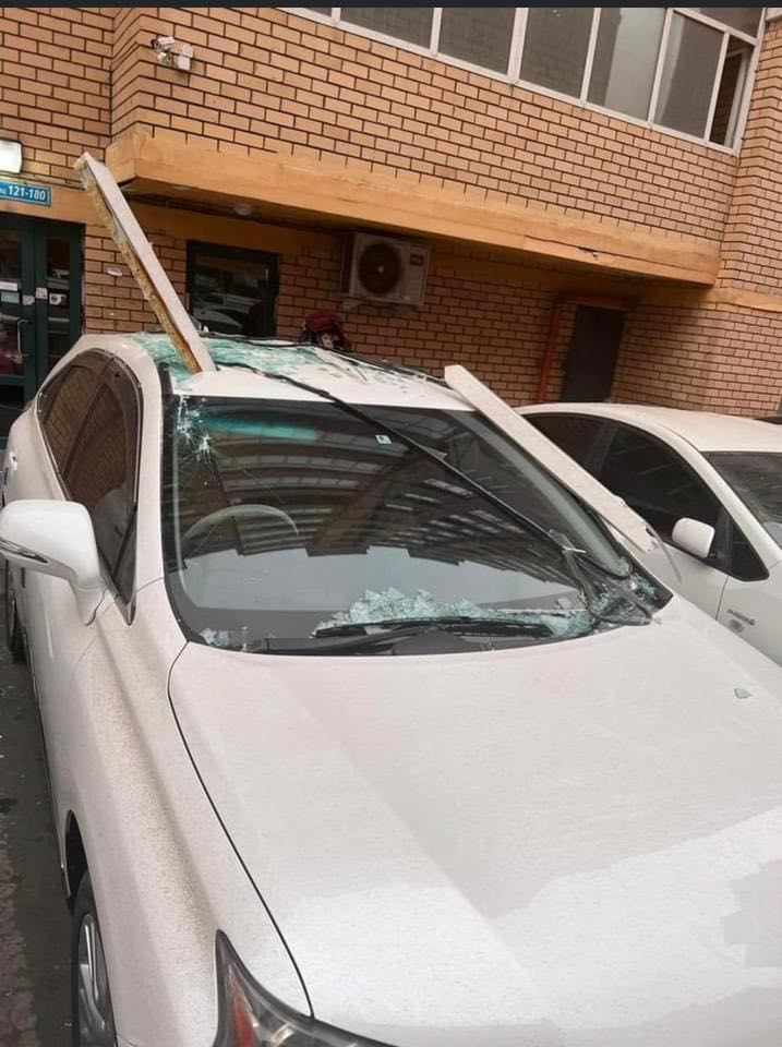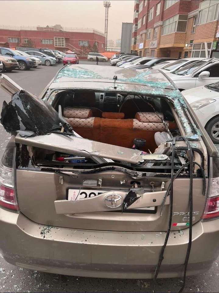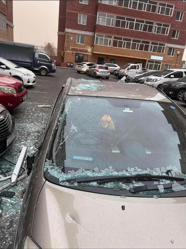 Хүчтэй салхины улмаас "Нарны хорооллын долдугаар байрны цонх хагарч, автомашин дээр унасан" гэх тайлбартай зураг олон нийтийн сүлжээгээр цацагдсан. Энэ талаар автомашиных нь дээвэр цөмөрч, цонх нь хагарсан "приус-20" автомашины эзнээс тодрууллаа. Тэрбээр “Саяны салхины улмаас айлын цонх биш давхрын тагтны хаалт унаж, долоон автомашины дээвэр цөмөрч, цонх нь хагарсан. Бид байрны СӨХ хариуцсан хүнтэй уулзахаар хүлээж байна. Түр зуурын салхинд унадаг шил, цонхтой байранд амьдарч байна гэхээр айдастай байна. Дараагийн салхинаар юу болохыг хэлж мэдэхгүй. Хэрвээ хүний дээрээс унасан бол үнэхээр хэцүү шүү дээ. Тус асуудлыг үнэлгээ тогтоодог мэргэжлийн байгууллагад хандаж шийдүүлнэ. Нарны хорооллын долдугаар байрыг “ Хурд” компани 2014 онд ашиглалтад оруулсан” гэлээ.