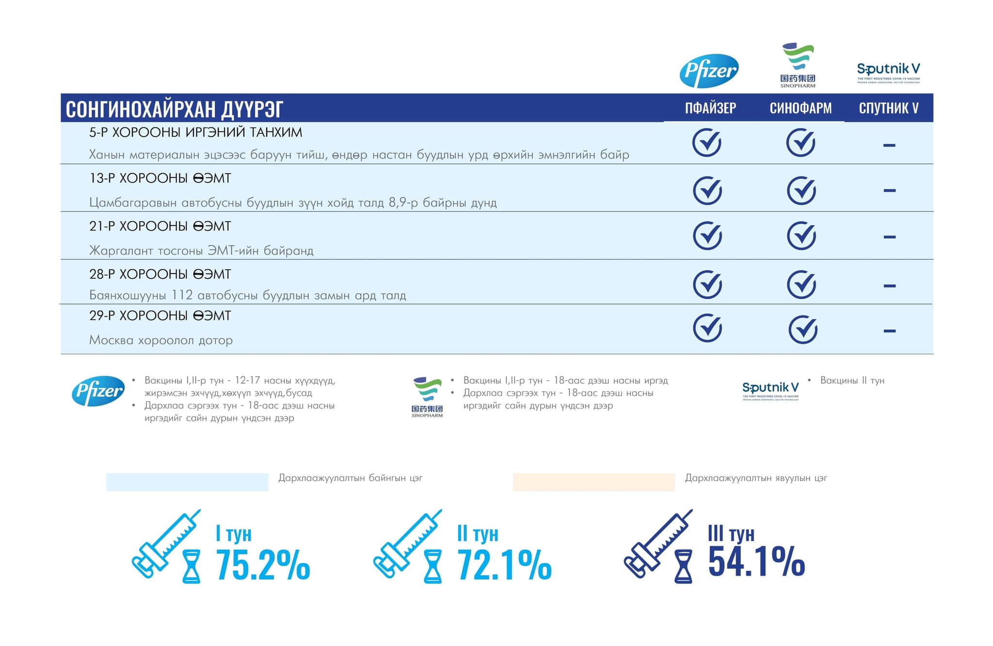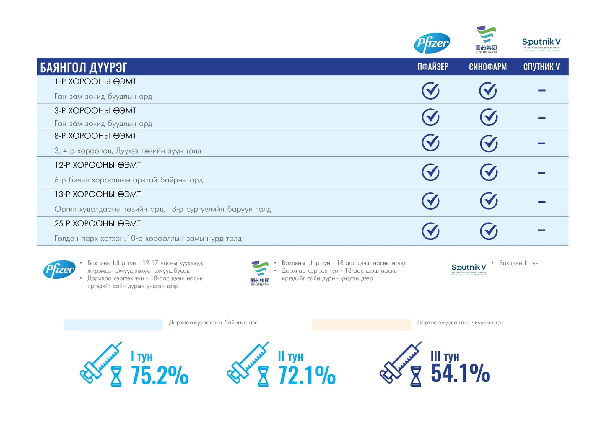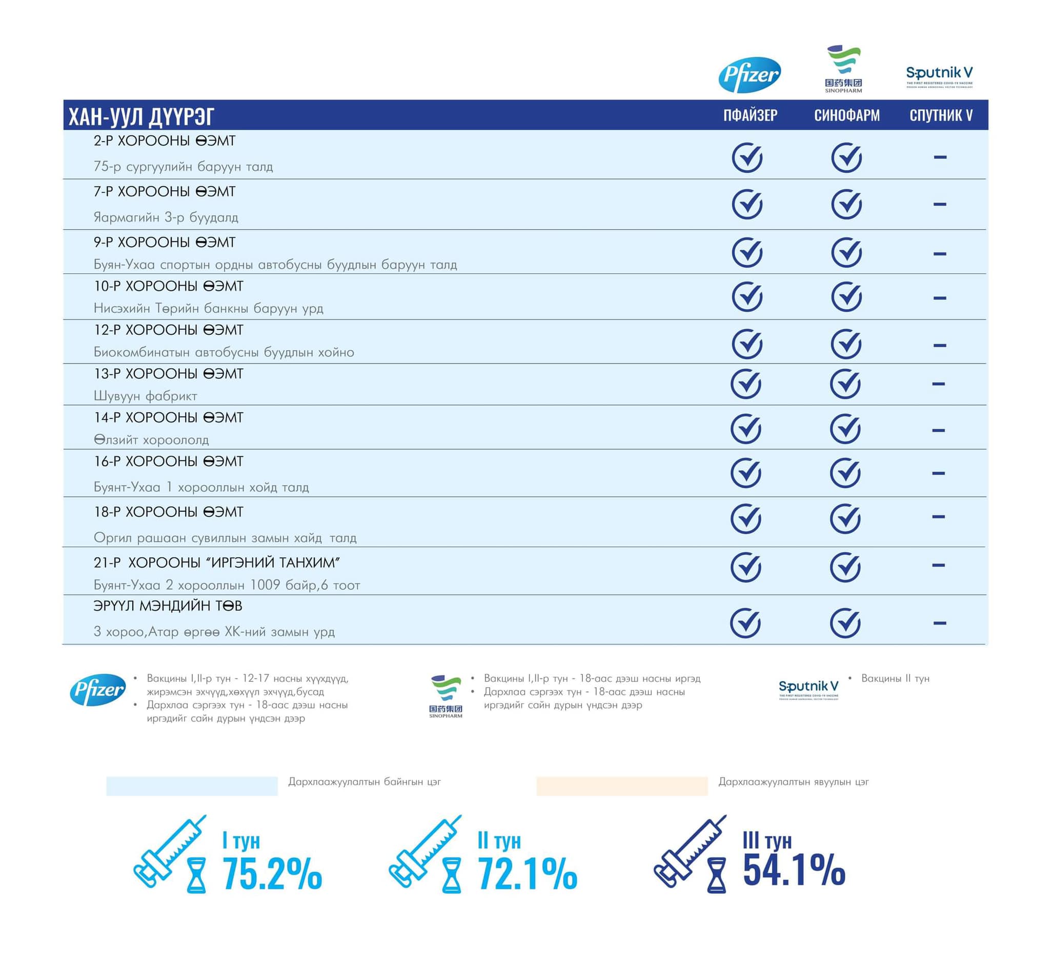 Өнөөдөр Улаанбаатар хотод суурин 40 цэгт 40 багийн 147 эмч, ажилтан ажиллах юм байна. Та өөрт ойр байрлах аль ч цэгт очиж дархлаажуулалтад хамрагдах боломжтой. Дархлаажуулалтын цэгүүд 09.00-16.00 цаг хүртэл ажиллана.