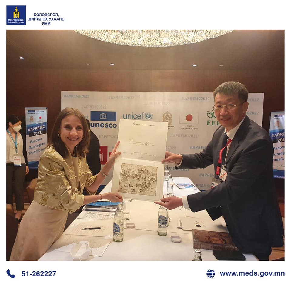 Мөн НҮБ-ын Хүүхдийн сангаас хэрэгжүүлсэн 200 гаруй ариун цэврийн байгууламж болон Монгол Улс ашиглалтад оруулсан WASH facility талаар санал солилцож Монгол Улс 2023 он гэхэд нүхэн жорлонг хлах зорилт тавин томоохон ажил эхлүүлсэн тухай мэдээлэл өглөө