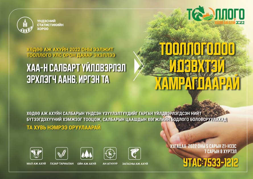 Монгол Улсын Засгийн газрын 2022 оны 74 дүгээр тогтоол, Нийслэлийн Засаг даргын А/751 дүгээр захирамжаар Хөдөө аж ахуйн ээлжит тооллогыг нийслэлд 2022 оны зургадугаар сарын 17-30-ны хооронд зохион байгуулахаар болсон юм.