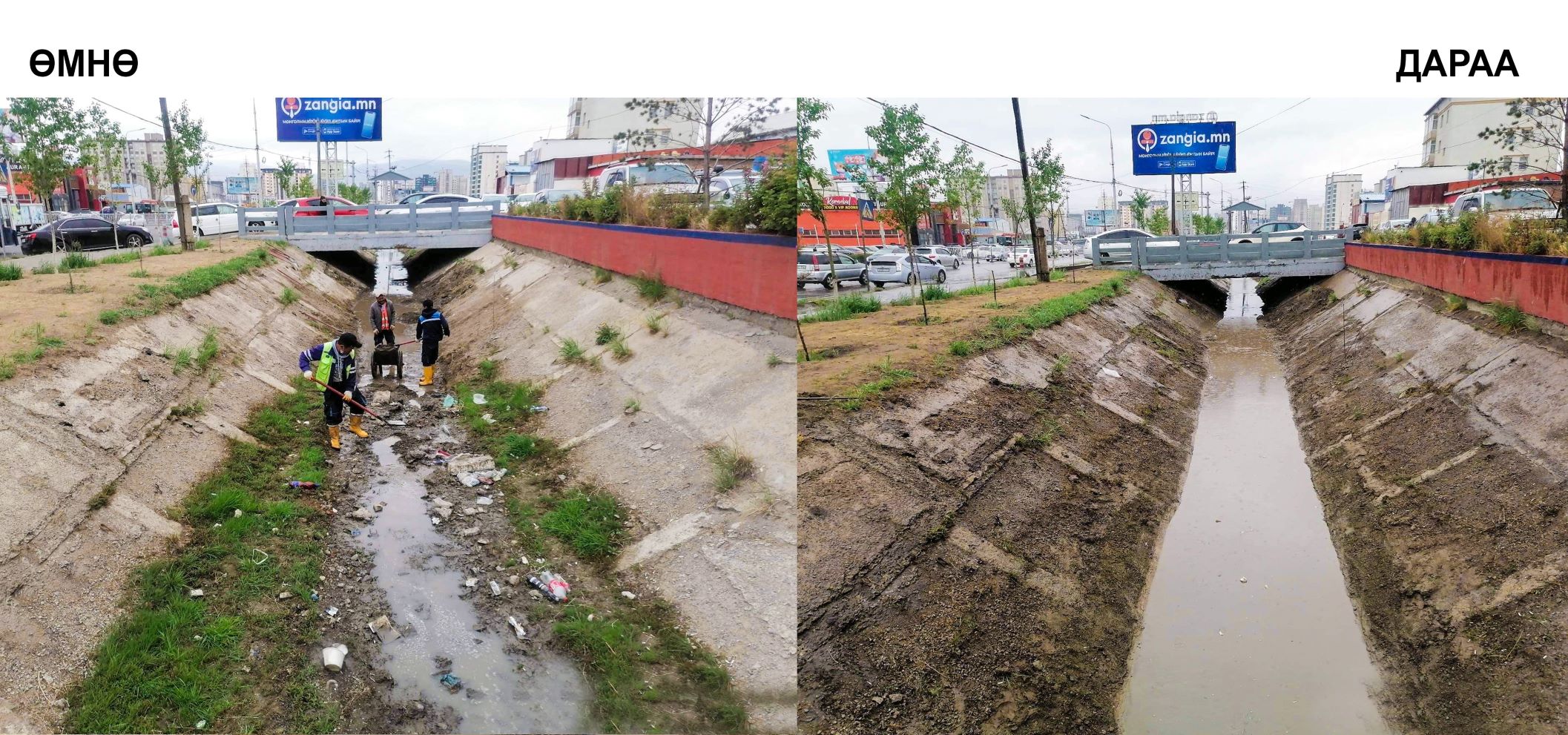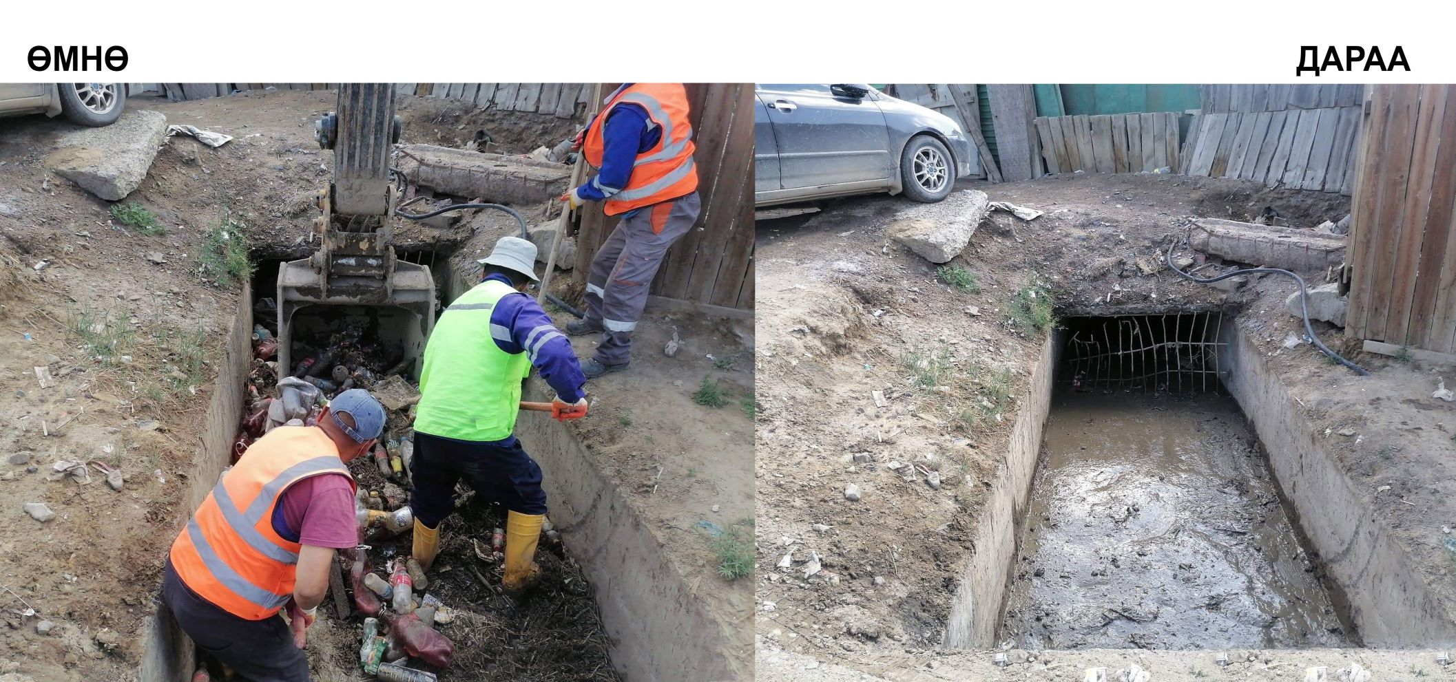 | Үерийн усаар бий болсон лаг, хагшаасыг цэвэрлэж байна |