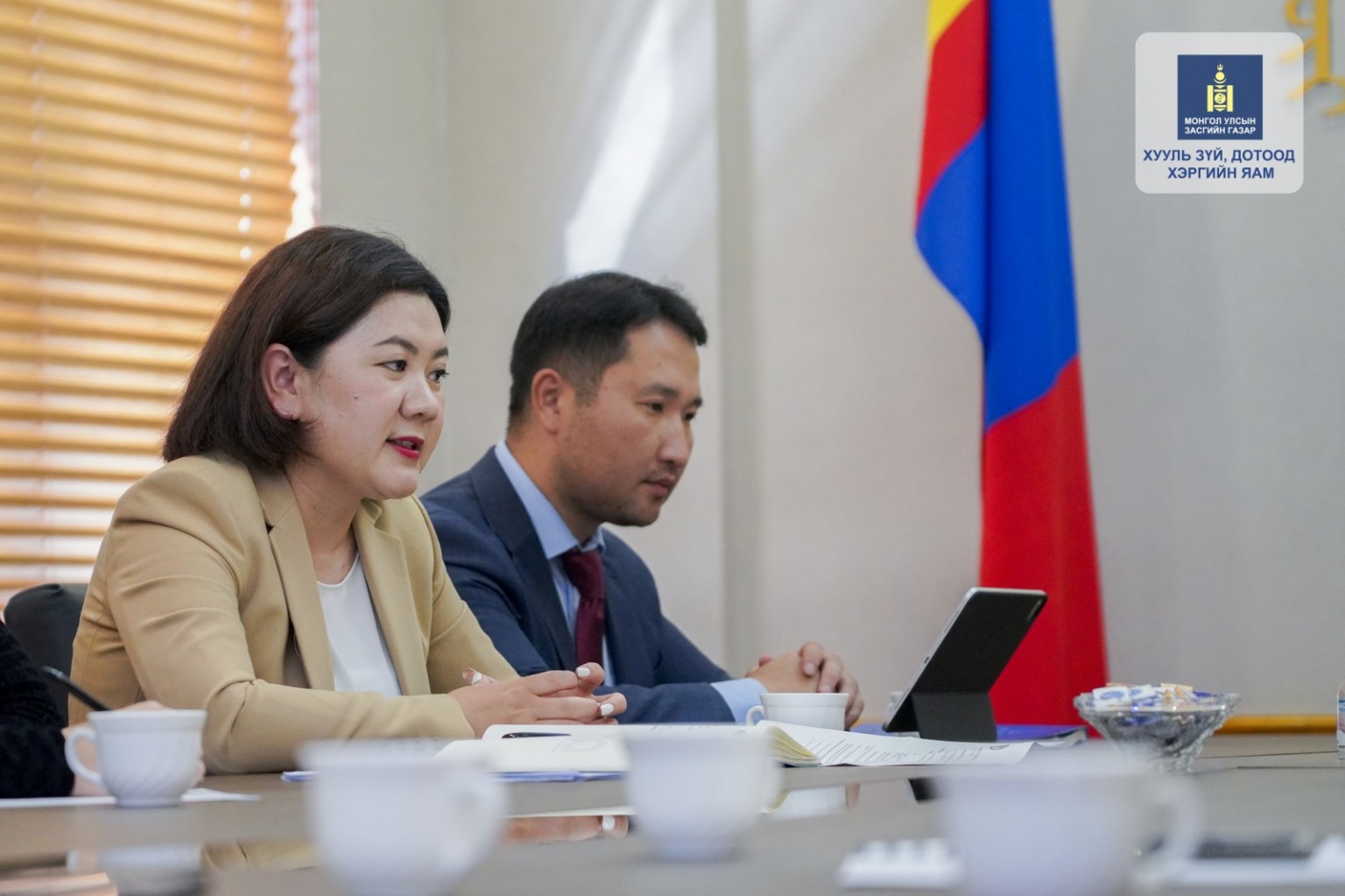 Мөн уулзалтын үеэр талууд Монгол Улсын хөрөнгө оруулалтын эрх зүйн орчин, бизнес эрхлэгчдэд тулгарч буй сорилт, бэрхшээл, хуулийн хэрэгжилт зэрэг сэдвүүдээр санал солилцлоо. Уулзалтын төгсгөлд Хууль зүй, дотоод хэргийн дэд сайд Б.Солонгоо хөрөнгө оруулалтын эрх зүйн орчныг сайжруулахад бизнес эрхлэгчид, холбогдох төрийн бус байгууллагууд болон бусад оролцогч талуудын оролцоог хангаж, харилцан санал солилцохын ач холбогдлыг онцолж, хөрөнгө оруулалтын эрх зүйн орчныг сайжруулах асуудлаар харилцан санал солилцож, хамтран ажиллахад бэлэн байгаагаа илэрхийлэв.