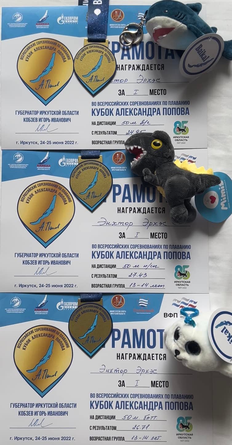Александр Владимирович Поповын нэрэмжит “Бүх Оросын усанд сэлэлтийн Цомын төлөөх тэмцээн” 2022 оны зургадугаар сарын 24, 25 өдрүүдэд ОХУ-д зохион байгуулагдлаа. Тус тэмцээнд Монгол Улсын төлөөлөн оролцсон “Сэлэм загас” клубийн тамирчин Спортын мастер Э. Эрхэс гурван алтан медаль хүртжээ.