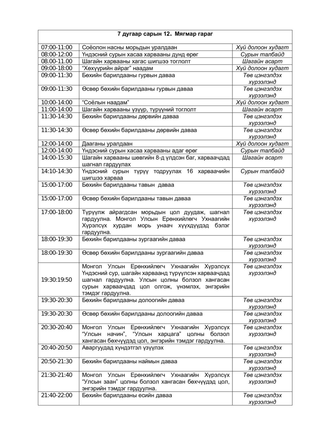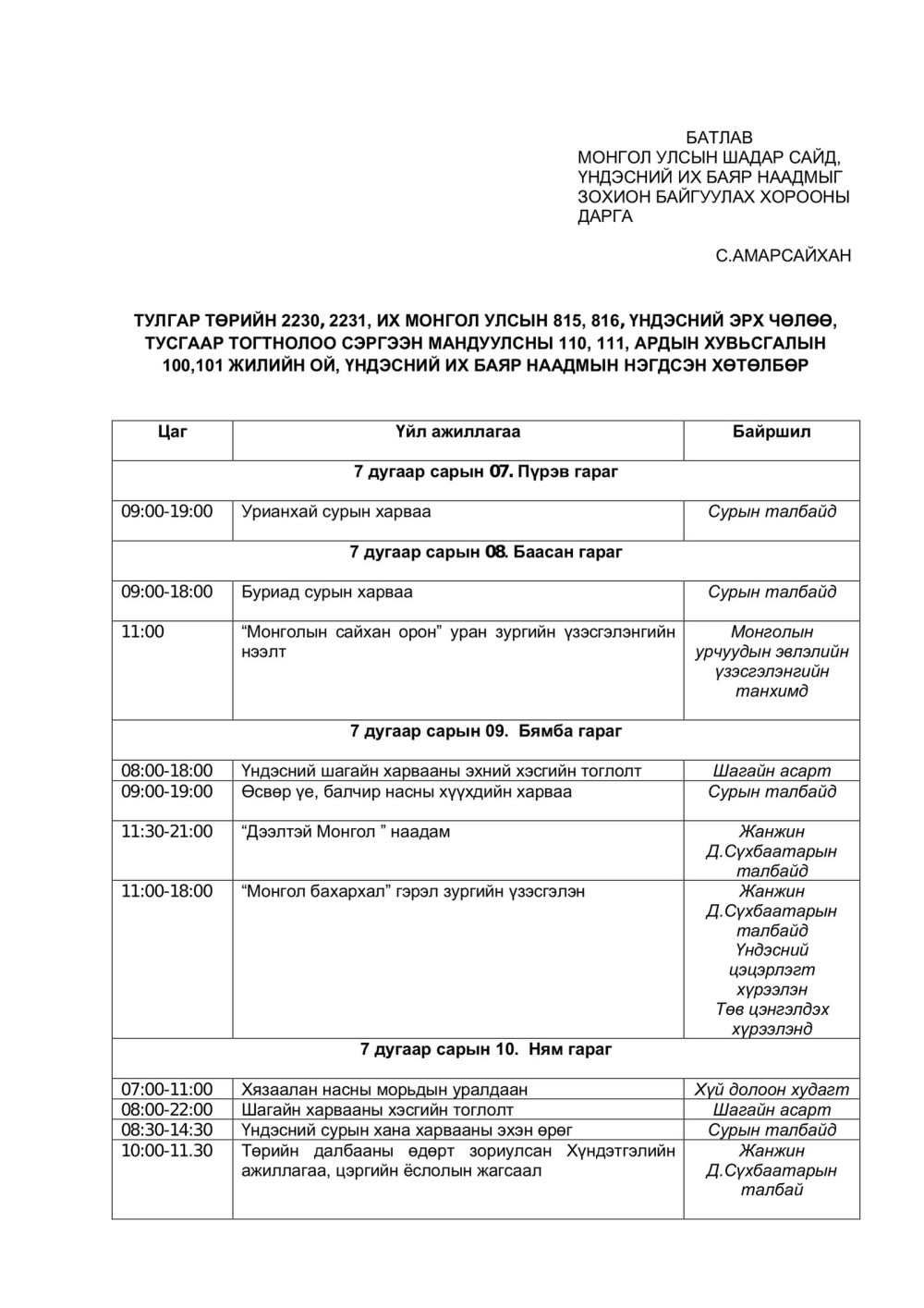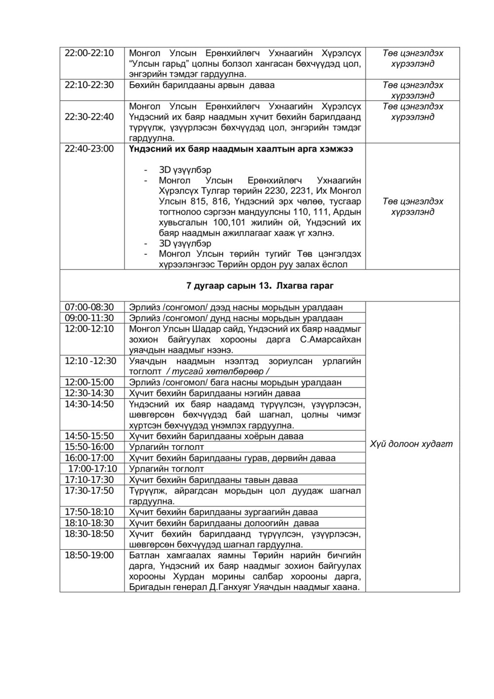 | Үндэсний их баяр наадмын нэгдсэн хөтөлбөр |