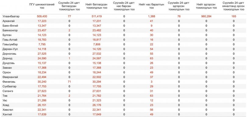 Улсын хэмжээнд өнгөрсөн хоногт 153 хүнээс коронавирусийн халдвар илэрчээ. Коронавирусийн халдвартай иргэдийн 77 нь Улаанбаатар хотод, 76 нь орон нутагт бүртгэгдсэн байна. Ингэснээр нийт коронавирусийн халдвартай 930.677 хүн манай улсад бүртгэгдсэн байна.