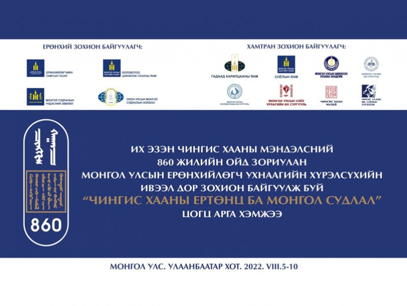 Монгол Улсын Ерөнхийлөгчийн ивээл дор “Чингис хааны ертөнц ба Монгол судлал” сэдэвт цогц арга хэмжээг 2022 оны наймдугаар сарын 5-10-ны өдрүүдэд Улаанбаатар хотноо зохион байгуулна. Энэ хүрээнд “Чингис хааны ертөнц ба Монгол судлал” олон улсын эрдэм шинжилгээний хурлыг зохион байгуулж, таван салбар хуралдаанаар 155 илтгэл хэлэлцүүлэх юм