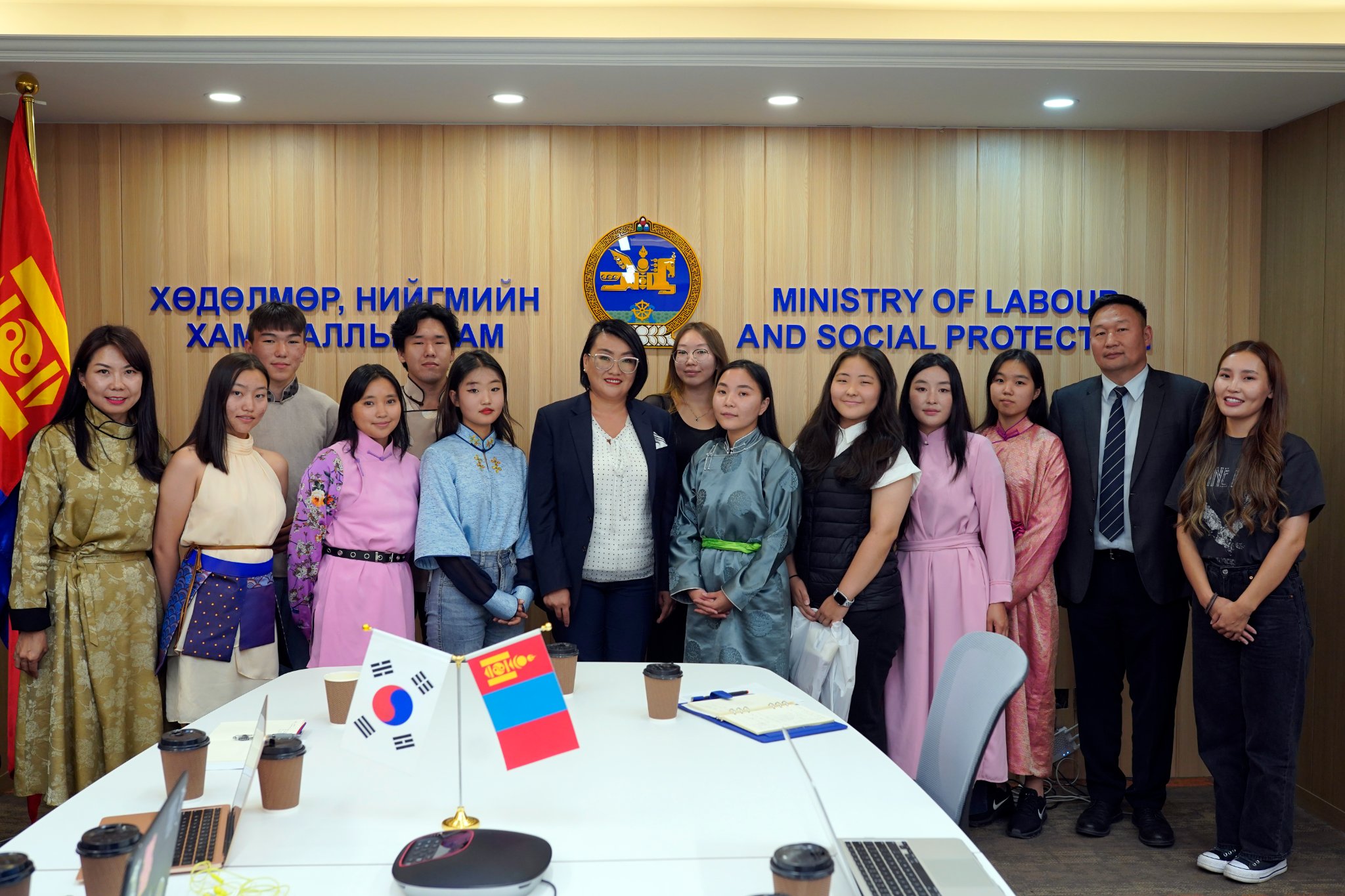Монгол Улсын Хөдөлмөр, нийгмийн хамгааллын яам Бүгд Найрамдах Солонгос Улсын Гэр бүл, жендэрийн тэгш байдлын яам хооронд байгуулсан Залуучууд солилцооны хөтөлбөрийн хамтын ажиллагааны Харилцан ойлголцлын санамж бичгийн хүрээнд жил бүр Залуучууд солилцооны хөтөлбөрийг хамтран зохион байгуулдаг юм