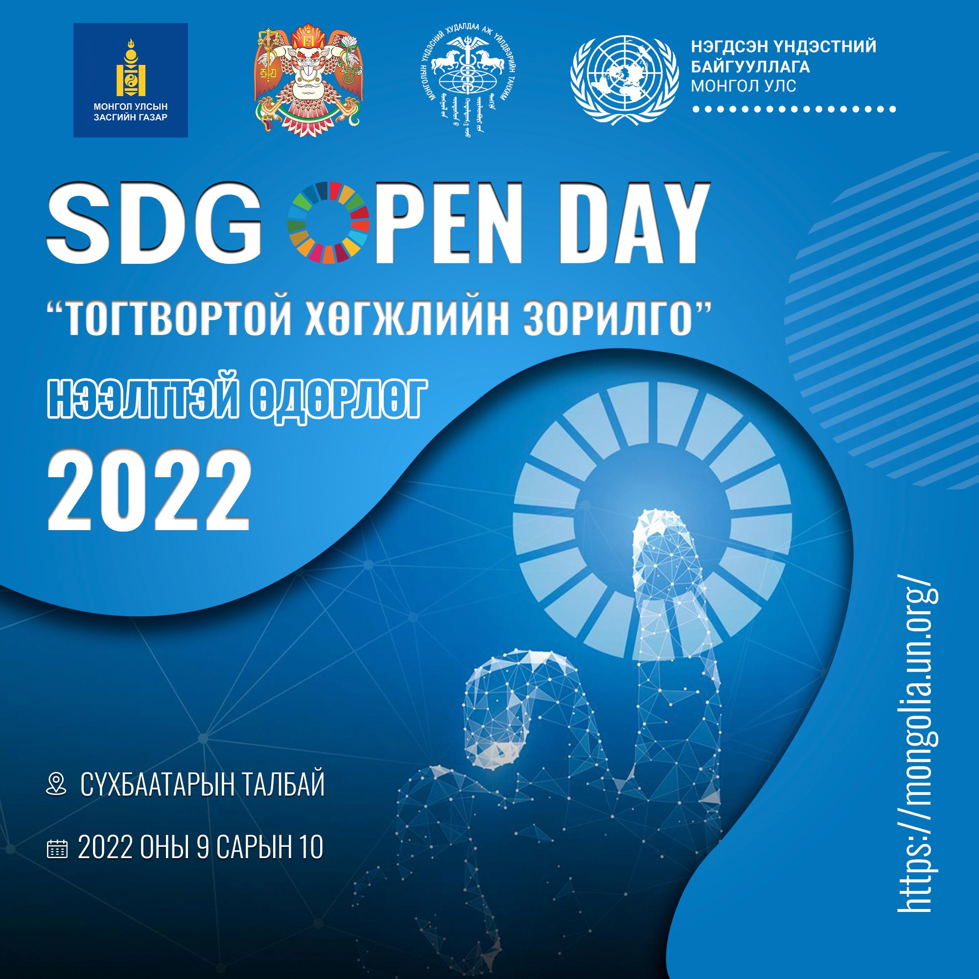 "Алсын хараа 2050" болон Тогтвортой хөгжлийн зорилгод хүрэхэд хүн бүрийн оролцоо чухал. Тогтвортой хөгжлийн зорилгуудын талаарх олон нийтийн мэдлэг, ойлголтыг дээшлүүлэх, хэрэгжилтийг эрчимжүүлэхэд иргэд, байгууллагуудын оролцоо, түншлэлийг дэмжихэд чиглэсэн “Тогтвортой хөгжлийн зорилгын нээлттэй өдөрлөг”-ийг ирэх есдүгээр сарын 10-ны өдөр Сүхбаатарын талбайд зохион байгуулах юм. Тогтвортой хөгжлийн зорилгуудыг хэрэгжүүлэх, дэмжихэд чиглэсэн үйл ажиллагаа, төсөл, санаачилга, сайн туршлагаа танилцуулах боломжийг олгож буй энэхүү нээлттэй өдөрлөгт дараах байгууллагуудыг өргөнөөр оролцохыг урьж байна. Үүнд: