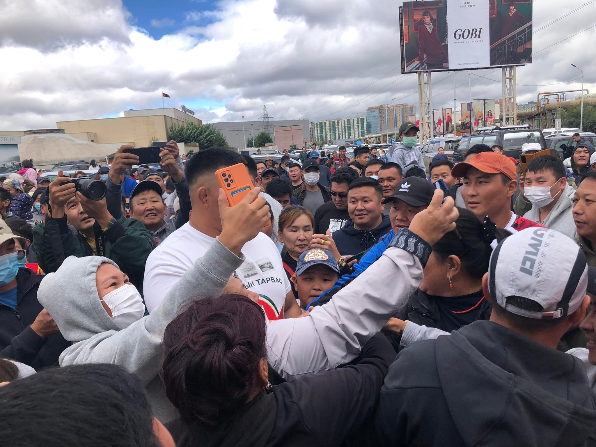 Улсын аварга О.Хангай өнөөдөр Хан-Уул дүүрэгт байрлах Говь компанийн үйлдвэрийн дэлгүүрийн гадна талбайд иргэдийг Ховд нутгийнхаа тарвасаар дайлж байна.