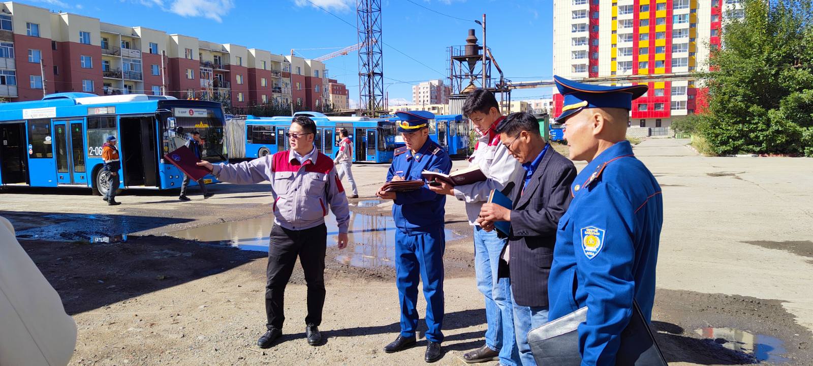 Нийслэлийн Засаг даргын 2022 оны А/59 дүгээр захирамжийн хэрэгжилтийг хангах ажлын хүрээнд Нийслэлийн Онцгой байдлын газар болон Нийтийн тээврийн газрын хамтарсан удирдамжийн дагуу гамшгаас хамгаалах бэлэн байдлын үзлэгийн бэлтгэл ажлыг хангах, нийтийн тээврийн үйлчилгээ эрхлэгч аж ахуй нэгж байгууллагуудад мөрдөгдөх норм дүрэм, стандартын хэрэгжилт, аюулгүй ажиллагааг хангуулах чиглэлийн хяналт шалгалтыг өчигдрөөс зохион байгуулж эхэлжээ.