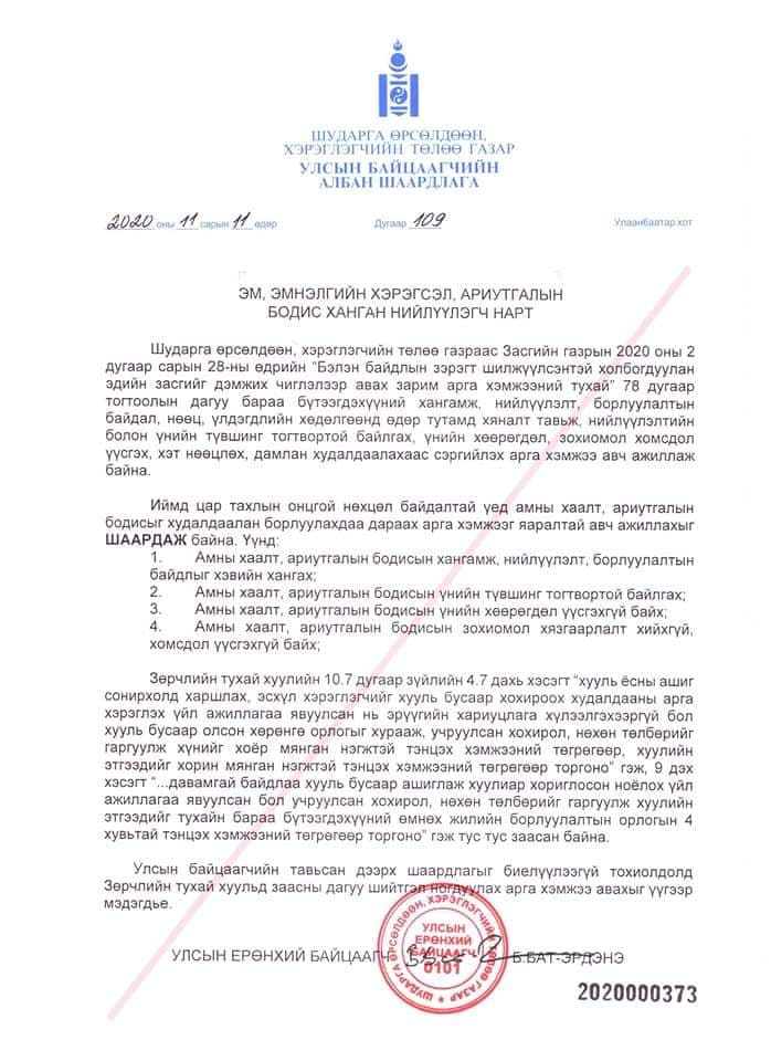 Эм ханган нийлүүлэх төв, эмийн сангуудад ШӨХТГ-аас цар тахлын онцгой нөхцөл байдлын үед амны хаалт, ариутгалын бодисыг худалдаалан борлуулахдаа амны хаалт, ариутгалын бодисын үнийн түвшинг тогтвортой байлгаж, хомсдол үүсгэхгүй байх албан шаардлага хүргүүлж буй. Тэгвэл эмийн сангууд 10:00 цагийн байдлаар амны хаалтны үнээ 100 төгрөгөөр нэмж, 500-гаар худалдаалдаг байсан бол 600 төгрөг болгожээ.