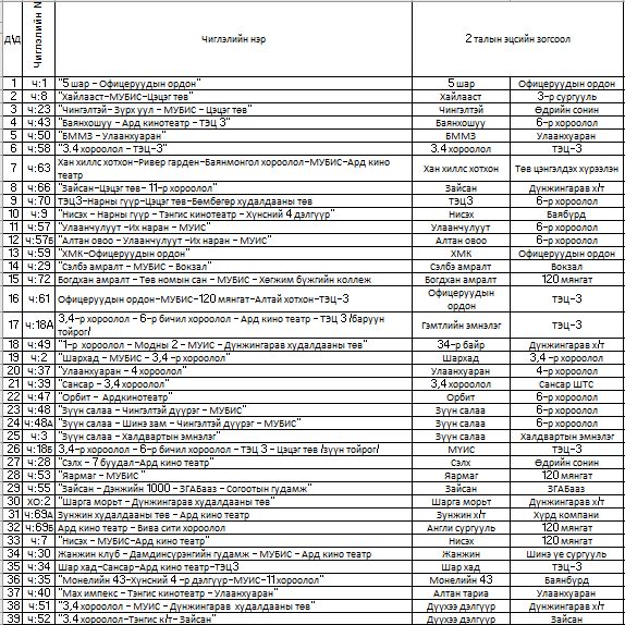 Эдгээр гудамж, замаар үйлчилгээ үзүүлдэг нийтийн тээврийн 39 чиглэлийн 324 тээврийн хэрэгслийн чиглэл, замналд өөрчлөлт орно.