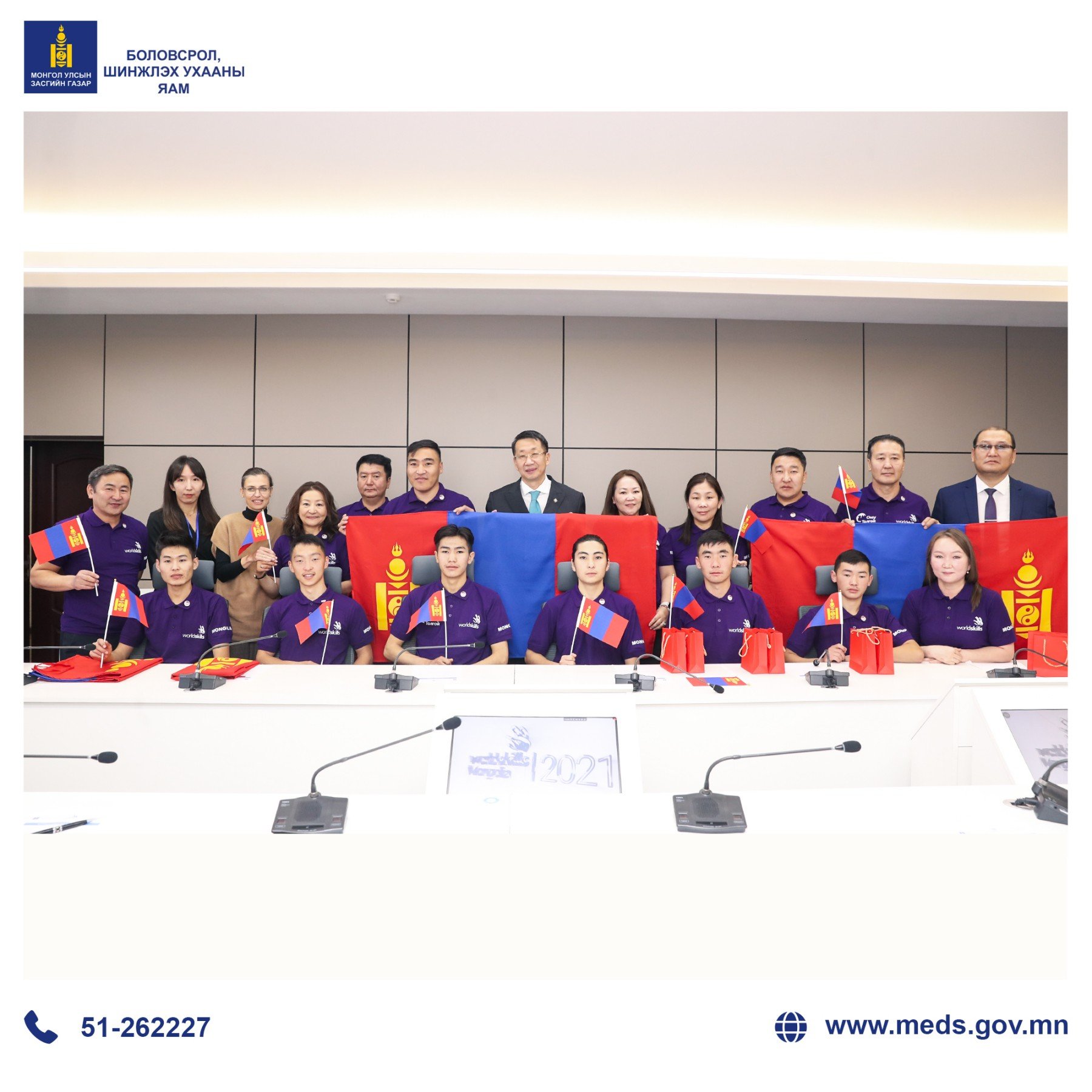 Боловсрол, шинжлэх ухааны сайд Л.Энх-Амгалан өнөөдөр тэмцээнд оролцох баг, тамирчид болон дэмжигч байгууллагуудын төлөөллийг хүлээн авч уулзан амжилт хүслээ. Уулзалтын үеэр Монгол Улсын баг тамирчдаас Швейцарийн Холбооны улсын Базел хотод болох мужааны тэмцээний оролцогч Завхан аймгийн Политехник коллежийн суралцагч Г.Хатанбаатар “Дэлхийн ур чадвар тэмцээнд оролцогчийн тангараг”-ийг эх хэлээрээ хэлэх оролцогчоор сонгогджээ. Тэрбээр багийн залуусын хамтаар тангарагаа өргөлөө.