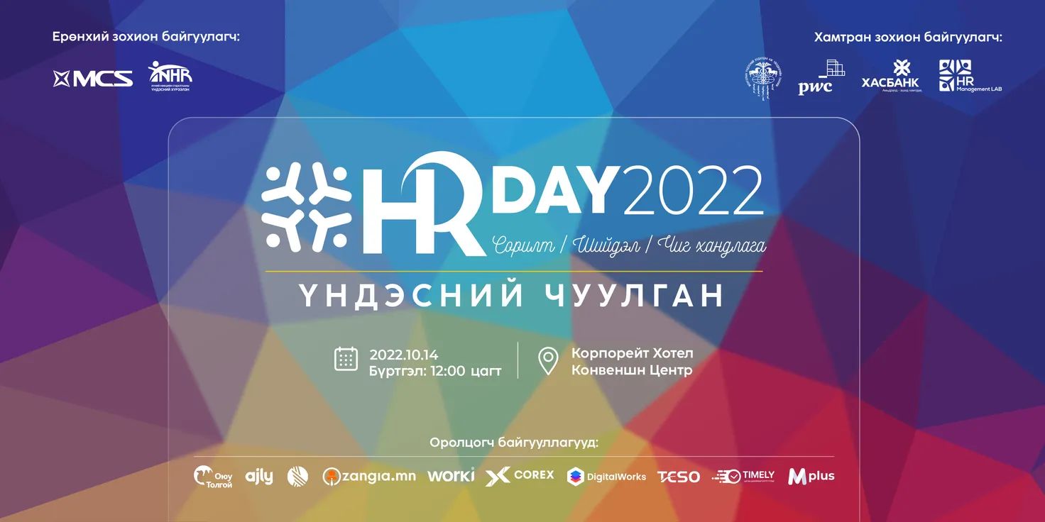 2012 оноос жил бүр уламжлал болгон зохион байгуулж буй Монголын хүний нөөцийн ажилтнуудын үндэсний чуулган аравдугаар сарын 14-ний өдөр Corporate Hotel and Convention Center-т болох гэж байна. Энэ жилийн “HR Day 2022” арга хэмжээг М-Си-Эс Групп Хүний нөөцийн судалгааны үндэсний хүрээлэнтэй хамтран зохион байгуулж байгаа бөгөөд чуулганыг хувийн хэвшил анх удаа зохион байгуулж байгаагаараа онцлог юм.