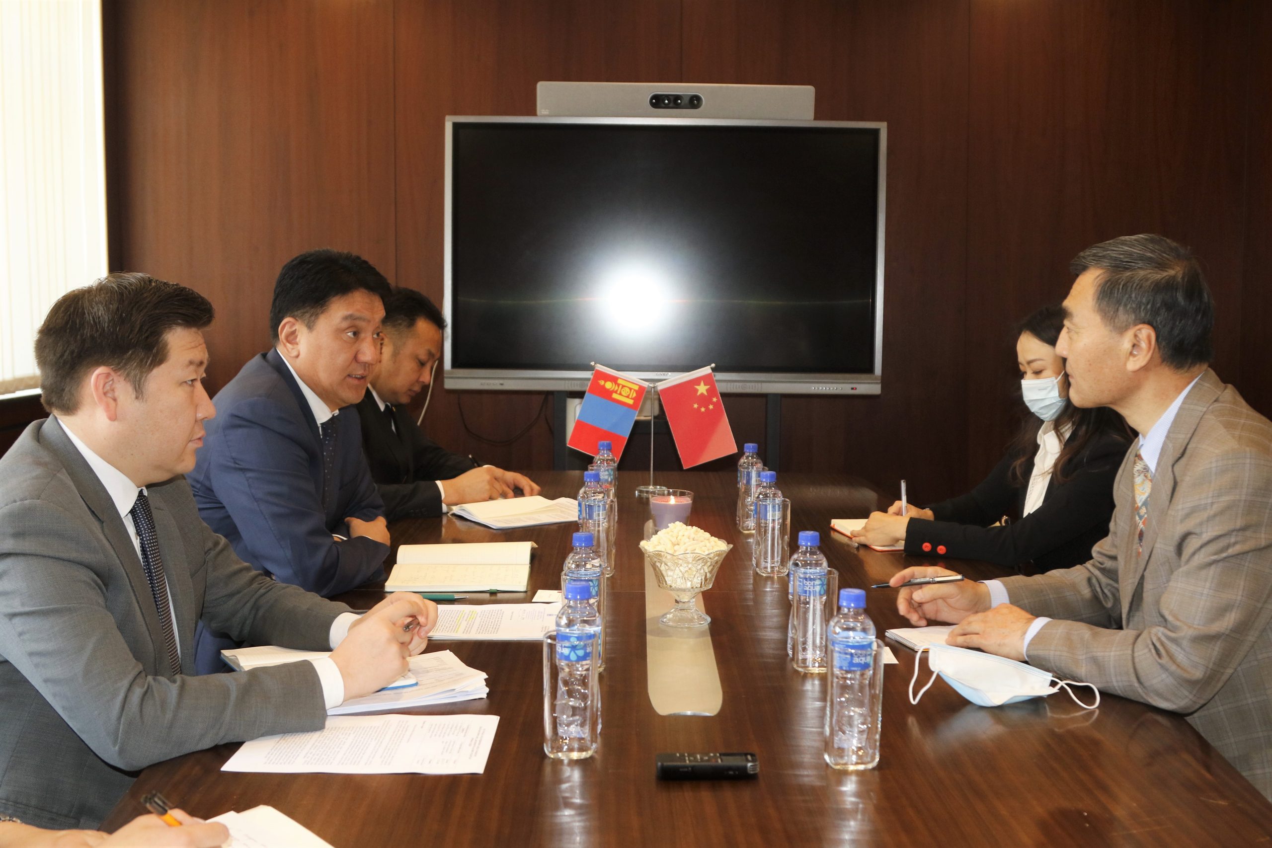 Уулзалтын эхэнд сайд Ж.Ганбаатар хилийн боомтын хорио цээрийн улмаас уул уурхайн салбарт хэрэглэгддэг бараа, материал, түүхий эд, бүтээгдэхүүний импорт, тээвэрлэлтэд хүндрэл учирсан хэвээр байгааг дурдаад цаашид боомтын хэвийн үйл ажиллагааг хангахын тулд БНХАУ-ын талтай нягт хамтран ажиллаж, шаардлагатай албан уулзалтуудыг хийх хүсэлтэй байгаагаа илэрхийллээ. Мөн БНХАУ-аас нийлүүлдэг газрын тосны бүтээгдэхүүний импортыг нэмэгдүүлэх, уурхайн үйлдвэрлэлд шаардлагатай тэсэрч дэлбэрэх бодис болон бусад урвалжийн нийлүүлэлтийн явцыг хөнгөвчлөхөд хамтран ажиллах саналтай байгаагаа дурдлаа.