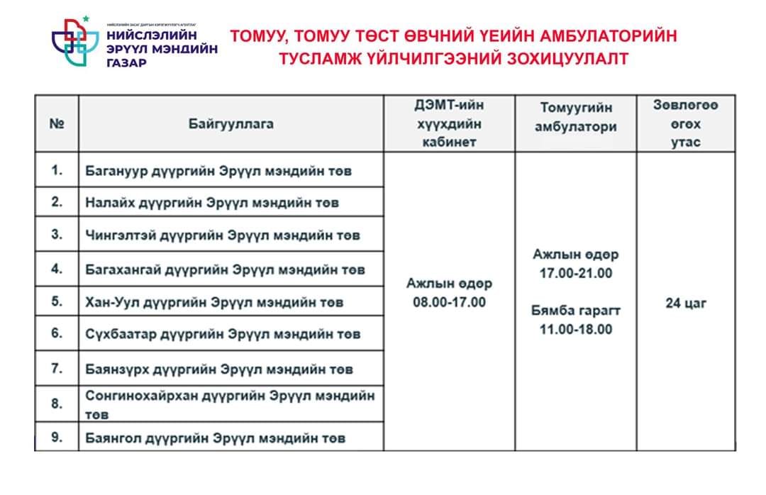 | Дүүргийн Эрүүл мэндийн төвүүд уртасгасан цагаар ажиллаж эхэллээ |