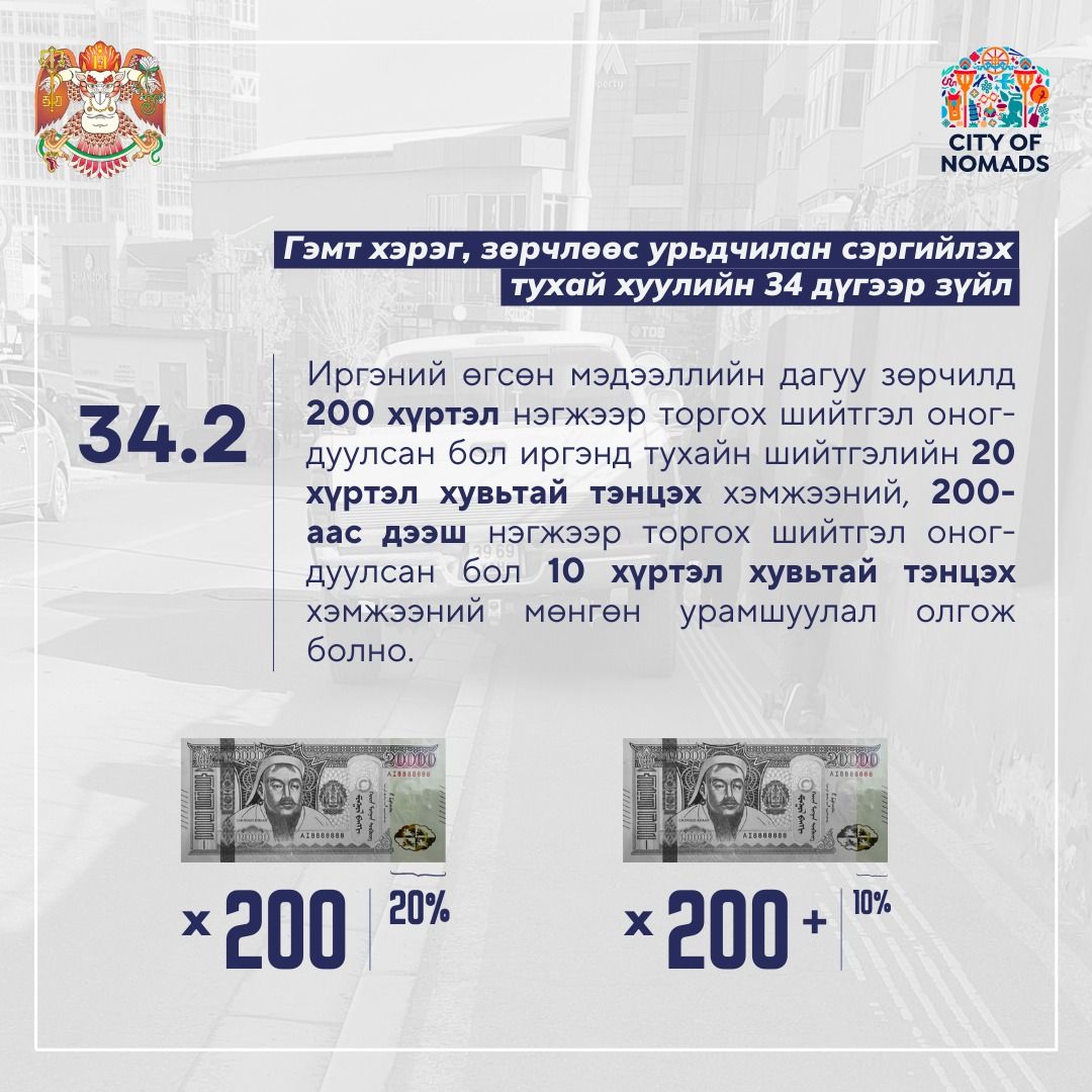 | Зөрчлийг илрүүлсэн иргэнийг урамшуулдаг болно |