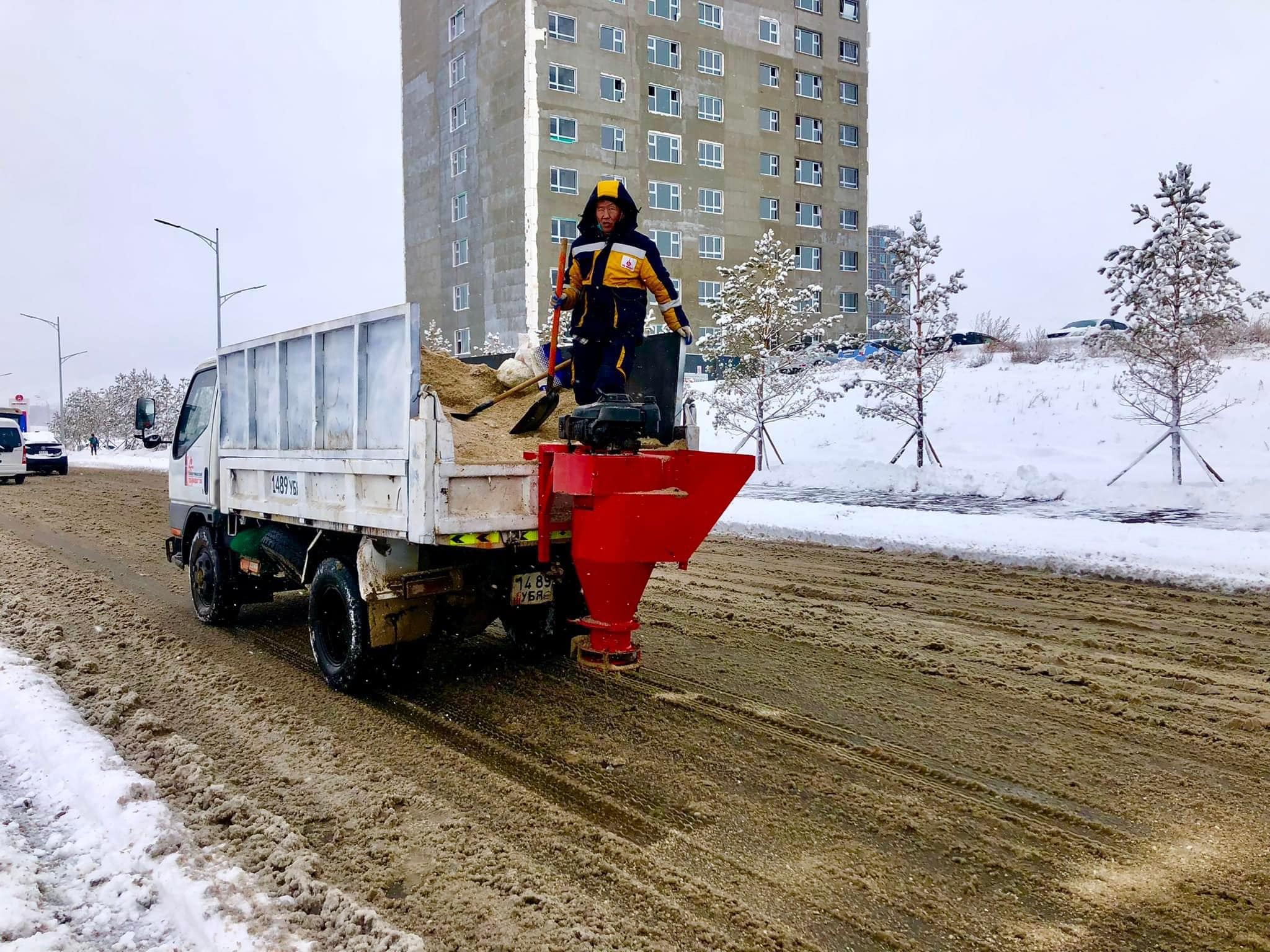 Хот тохижилтын газар болон дүүргүүдийн ТҮК, гэрээт аж ахуйн нэгж байгууллагуудаас нийт 430 зам талбайн үйлчлэгч, 48 тусгай зориулалтын машин техниктэй хариуцсан автозам талбайн цэвэрлэгээ, үйлчилгээнд ажиллаж, 120тн давс, 32тн бодисны зарцуулалт хийгдээд байна.