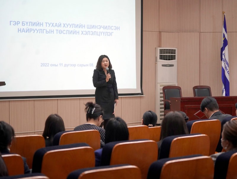 Хөдөлмөр, нийгмийн хамгааллын яам Хууль зүй, дотоод хэргийн яамтай хамтран Гэр бүлийн тухай хуулийн шинэчилсэн найруулгын төслийн хэлэлцүүлгийг зохион байгууллаа. Хэлэлцүүлэгт төр, төрийн бус байгууллага, өрх толгойлсон эх, эцэг зэрэг хуулиар эрх ашиг нь хөндөгдөх иргэдийн төлөөлөл нийт 70 гаруй хүн оролцов.