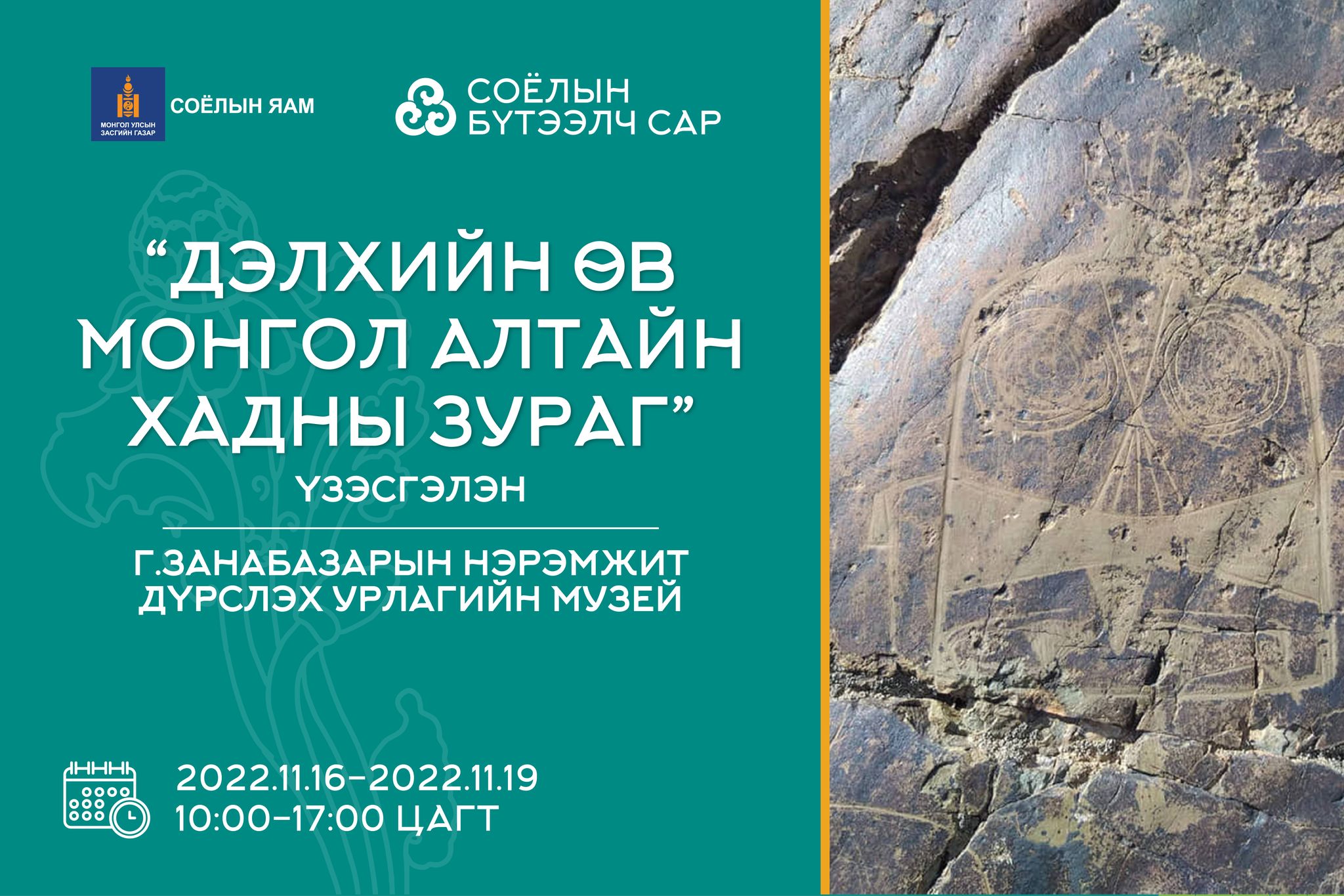 | "Дэлхийн өв - Монгол Алтайн хадны зураг" үзэсгэлэн зохион байгуулагдана. |