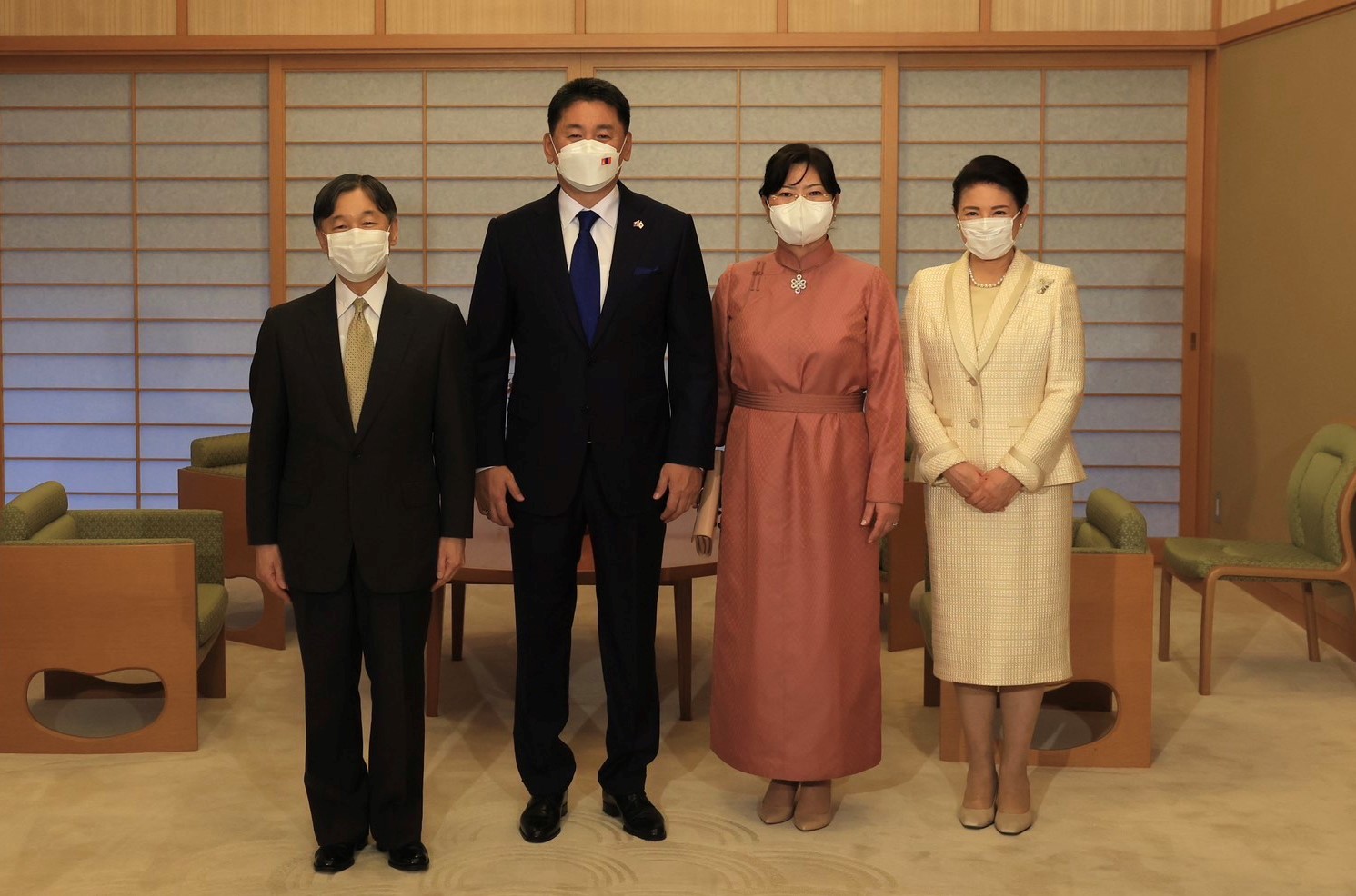 | Монгол Улсын Ерөнхийлөгч У.Хүрэлсүх гэргий Л.Болорцэцэгийн хамт Япон Улсын Цог Жавхлант Эзэн Хаан Нарүхито, Эрхэм Дээд Хатан Масако нарт бараалхав |