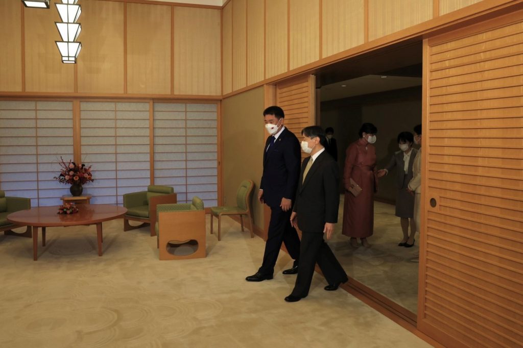 Монгол Улсын Ерөнхийлөгч Ухнаагийн Хүрэлсүх, гэргий Лувсандоржийн Болорцэцэгийн хамт Япон Улсын Цог Жавхлант Эзэн Хаан Нарүхито, Эрхэм Дээд Хатан Масако нарт 2022 оны 11 дүгээр сарын 30-ны өдөр Эзэн Хааны ордонд бараалхав. Монгол Улсын Ерөнхийлөгч Ухнаагийн Хүрэлсүх Монгол Улс, Япон Улсын хооронд дипломат харилцаа тогтоосны 50 жилийн ойн хүрээнд Япон Улсад айлчилж, Цог Жавхлант Эзэн Хаан Нарүхито-д бараалхаж байгаадаа баяртай байгаагаа илэрхийлж, Эзэн Хаан Нарүхито болон Японы найрсаг ард түмэнд Монголын ард түмний халуун дотно мэндчилгээг уламжлав.