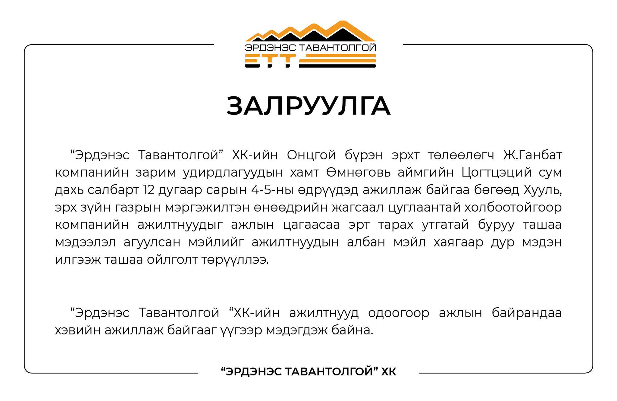 | “Эрдэнэс Тавантолгой” ХК: Жагсаалд оролцохыг уриалсан хуурамч мэйл ажилтнууд руу илгээсэн байна |