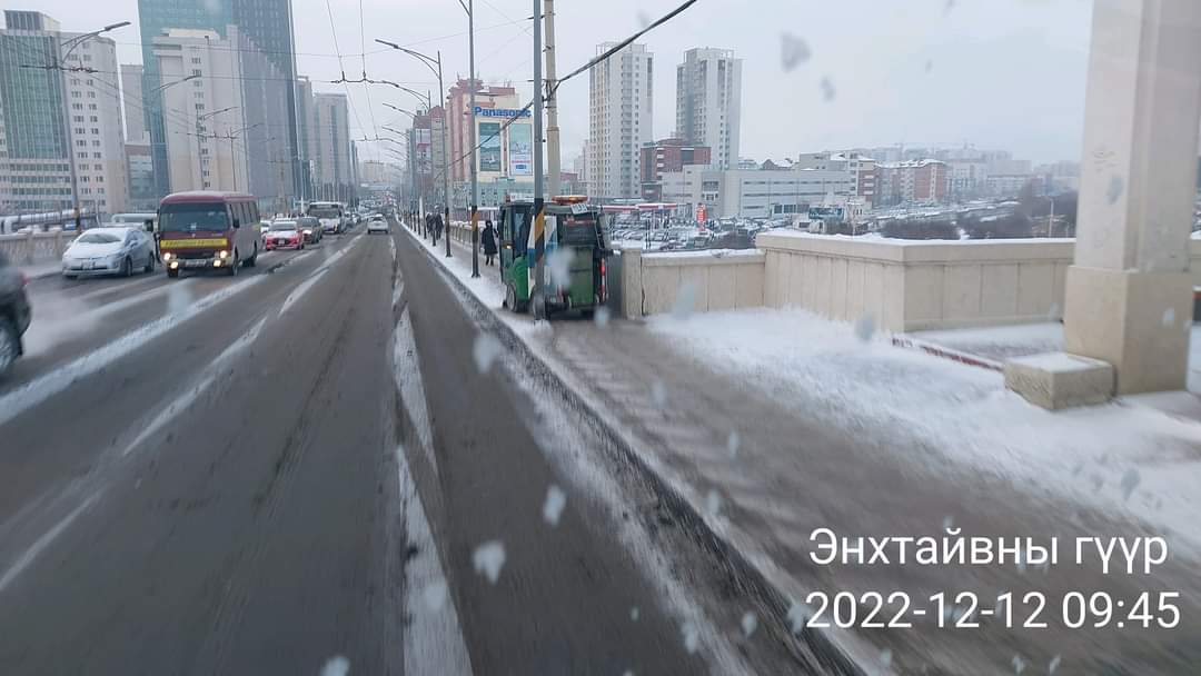 Нийслэлийн алслагдсан зам болох Морингийн даваа, Айдсын даваа, Ар гүнт, Өвөр гүнт зэрэг замд одоогийн байдлаар халтиргаа гулгаа үүсээгүй, хөдөлгөөн хэвийн байгаа бөгөөд нийслэлийн томоохон замын уулзварууд, өгсүүр замд давс, бодисыг нэмэлтээр цацаж байна. Түүнчлэн хотын гол магистрал төв замуудад маршрутын дагуу давс, бодис цацах, зам талбайг цэвэрлэх ажил үргэлжилсээр байгаа юм.