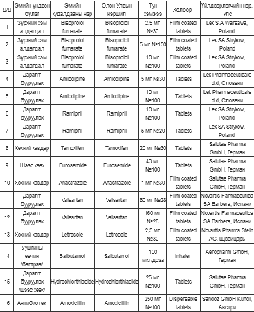| Эрүүл мэндийн даатгалын сангаас 19 төрлийн эмийг 100 хувь хөнгөлөлттэй үнээр олгож байна |