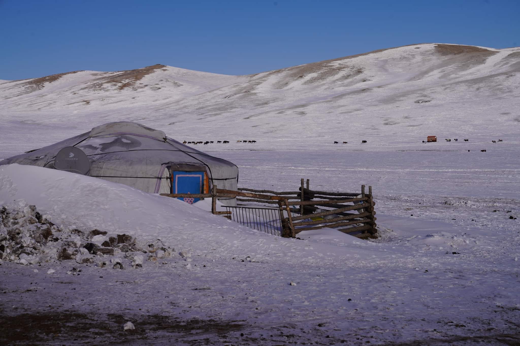 Улсын Онцгой комиссын дарга, Монгол Улсын Шадар сайд С.Амарсайхан, УИХ-ын гишүүн Ж.Батжаргал, Ц.Туваан болон бусад холбогдох албаныхан өвөлжилт хүндэрч буй аймаг, сумуудад ажиллаж байна. Тус ажлын хүрээнд Төв аймгийн Эрдэнэ сумын нутагт ажиллаж, тус сумын нэгдүгээр багийн малчин өрх н.Даваасүрэнгийн аж байдалтай танилцлаа. Гэргий С.Даваагийн хэлж буйгаар өнгөрсөн 30 жилд байгаагүй цастай жил болж буйг дурдлаа. Тэднийх хүн хүч багатай учраас ихэнх бог малаа айлын малтай нийлүүлж өвөлжүүлж, цөөн тооны богоо өөрөө маллаж байгаа гэнэ. Хэдийгээр цөөхөн малтай хэдий ч цас ихтэй, бэлчээрлэх боломжгүйгээс малаа тэжээж байгаа бөгөөд өнгөрсөн намар 200 боодол өвс базаасан ч хэдийнэ дууссан гэнэ. Иймд Сумаас өвс тэжээл авч байгаа ч зам даваа хаагдсанаас сүүлийн хэд хоног сум руугаа ч явж чадахгүй байгаа тухайгаа учирлаж байлаа. Сум, орон нутгийн удирдлагууд болон Улсын оцгой комиссын зүгээс тус айлд хүнс, эрүүл мэндийн тусламжийн багцыг энэ үеэр хүргүүллээ. Эрдэнэ сумын хувьд нийт нутаг цасан бүрхүүлтэй, нэг, дөрөв, тавдугаар багуудын нутаг дэвсгэрт малын бэлчээр муу, гуу жалгандаа 40-50 см , бусад газартаа 20-30 см, мал бэлчээрлэхэд хүндрэл үүсээд байгаа юм.