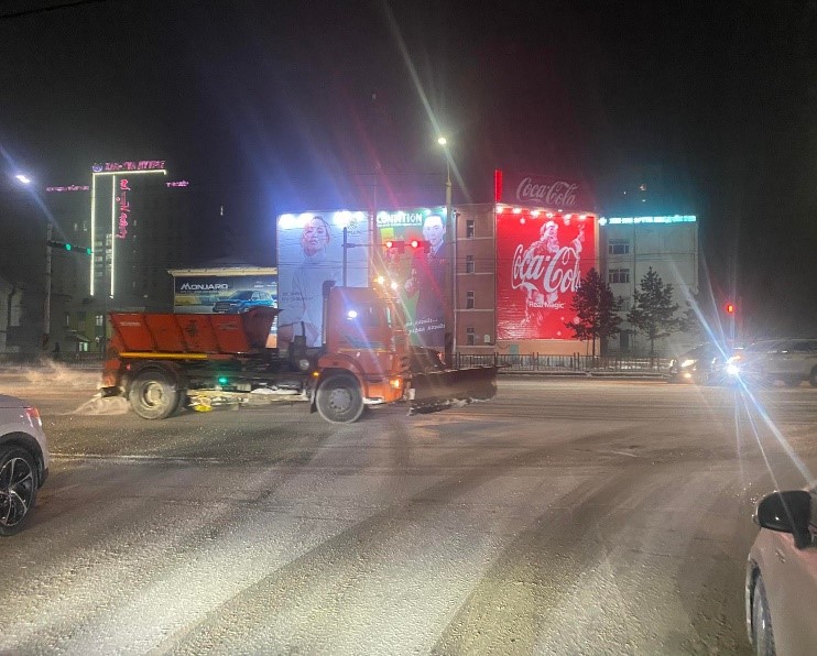 Хот тохижилтын газар ОНӨААТҮГ бодис цацагч 13 машин, 20 техник хэрэгсэл, 371 хүний бүрэлдэхүүнтэйгээр шөнийн ээлжээр ажилласан бөгөөд зам талбайн үйлчлэгч нар явган зам, нуухны цэвэрлэгээ хийж, халтиргаа гулгаанаас сэргийлэх арга хэмжээ авч буй.