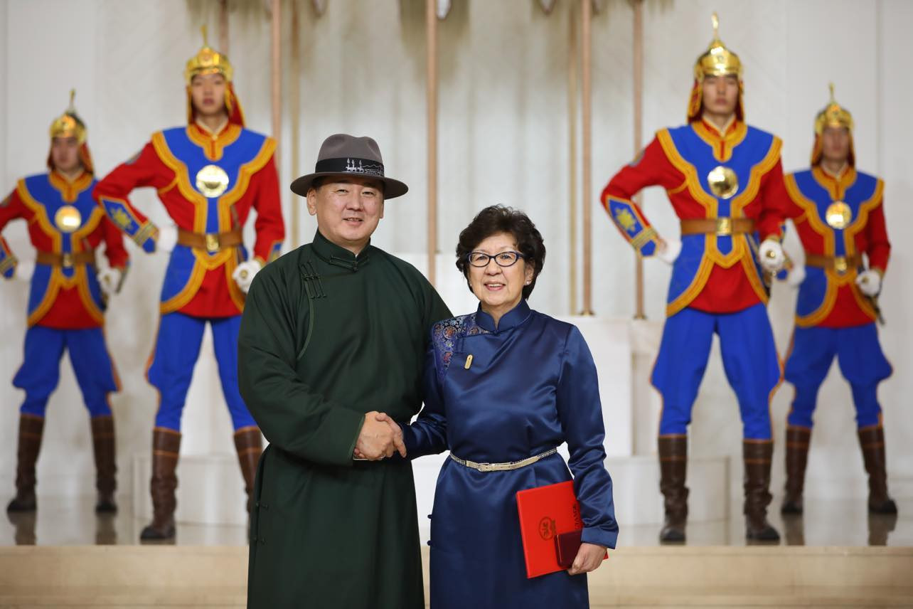 Монгол Улсын Ерөнхийлөгч Ухнаагийн Хүрэлсүх Үндэсний эрх чөлөө, тусгаар тогтнолоо сэргээн мандуулсны 111 жилийн ойг тохиолдуулан гадаад харилцааны салбарт олон жил үр бүтээл, идэвх санаачилгатай ажиллаж, гадаад бодлогын зорилтуудыг хэрэгжүүлэхэд оруулсан хувь нэмрийг нь өндрөөр үнэлж нэр бүхий дипломатуудад цол хүртээв.